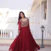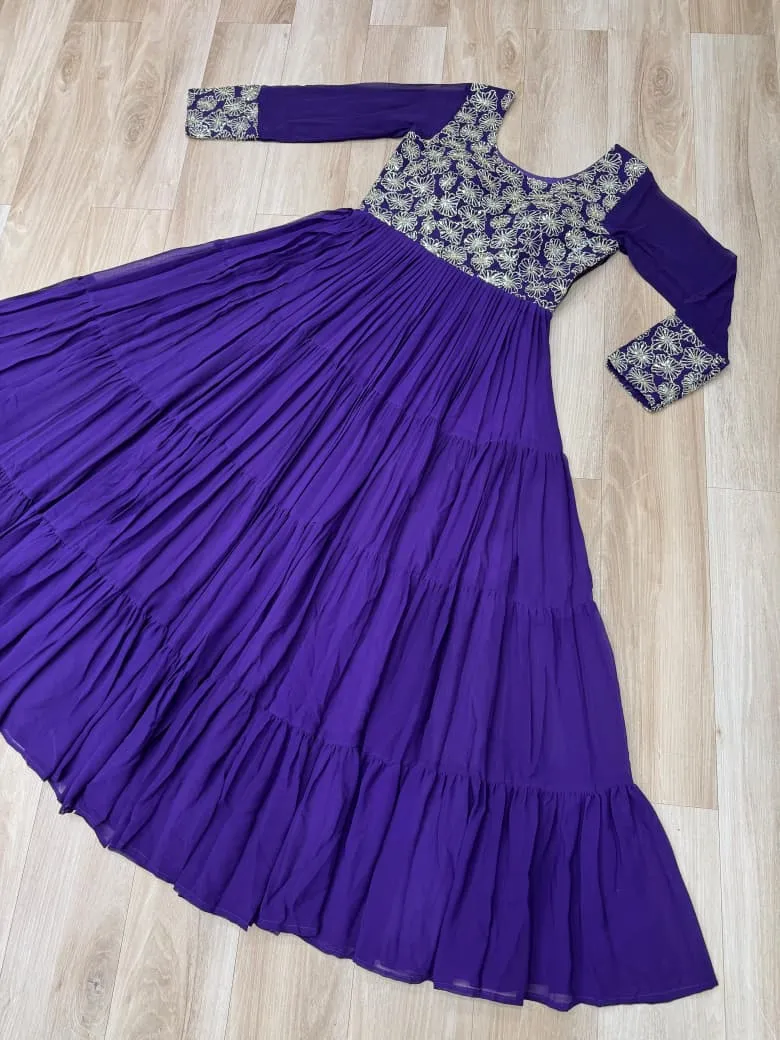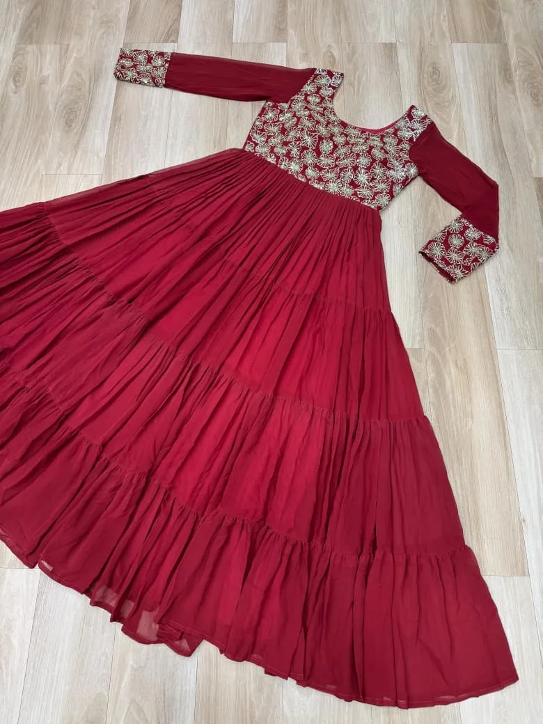 • Top: Faux Blooming Georgette With Sequins, Zari, And Pipe Embroidered Work