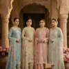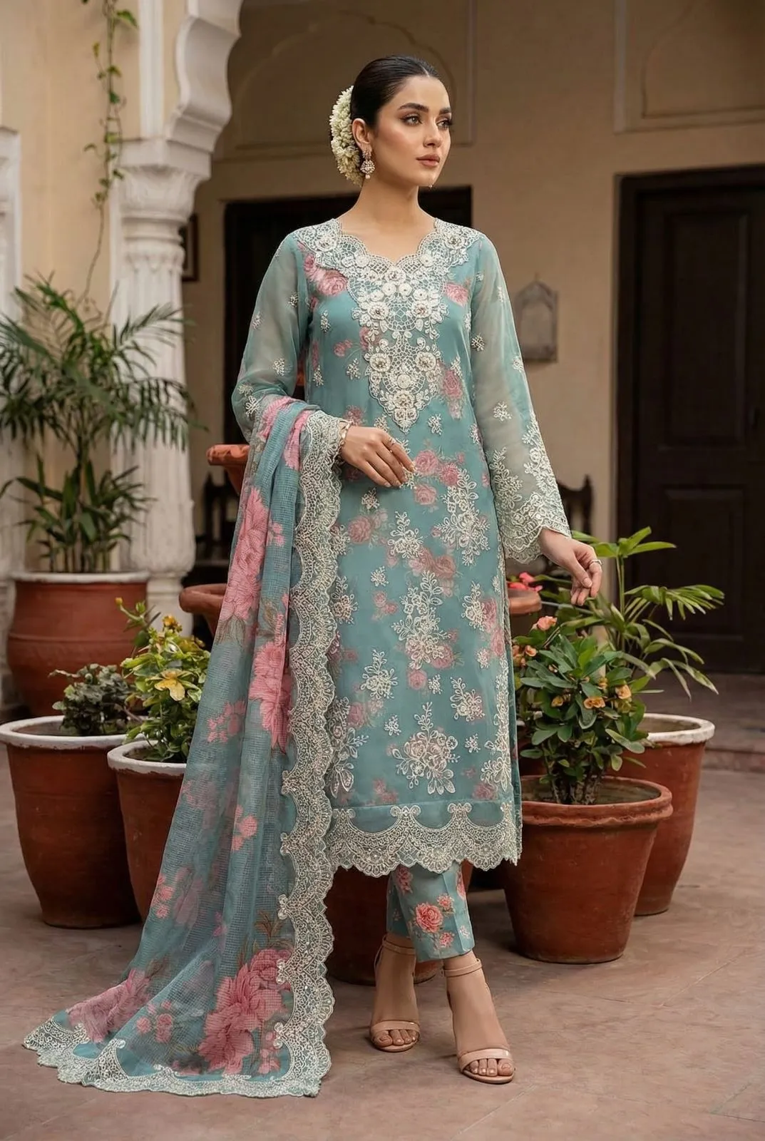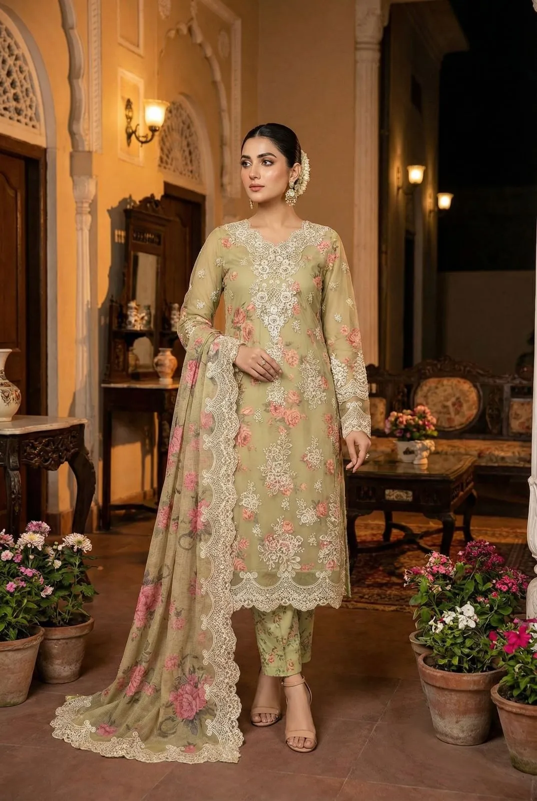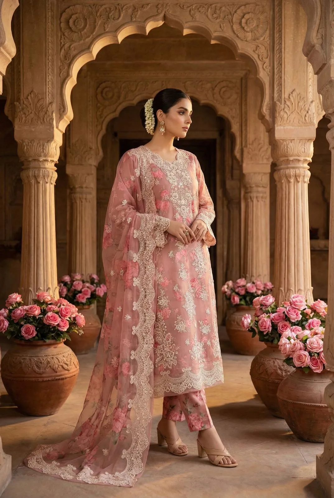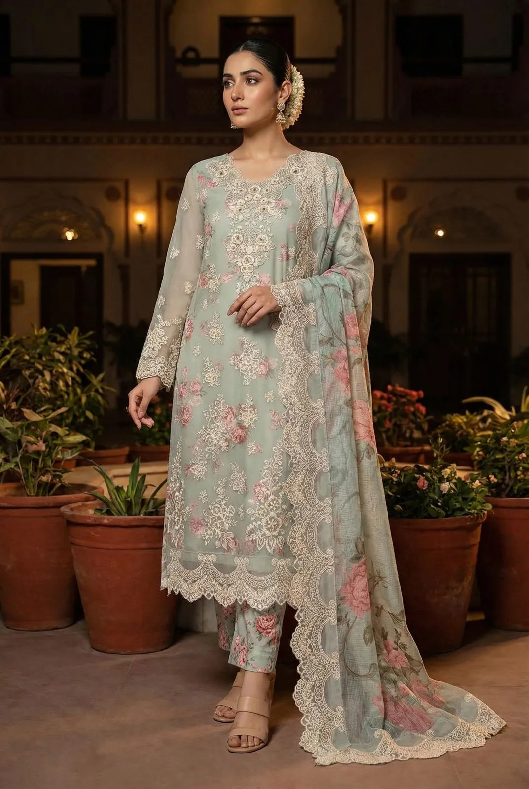 - Top: Crystal Chiffon With Embroidery Sequence Work, Neck Applic Work, And Khatli Work