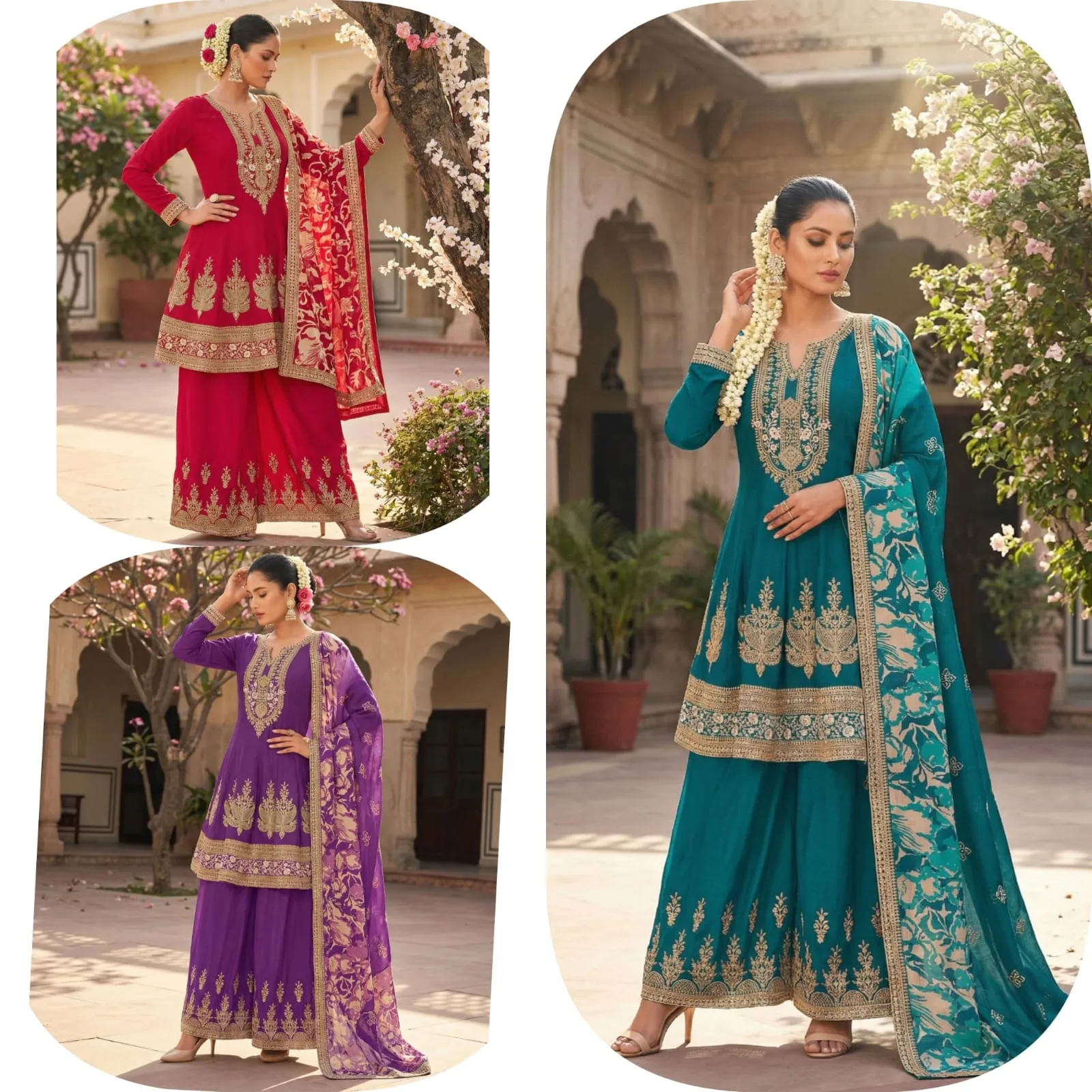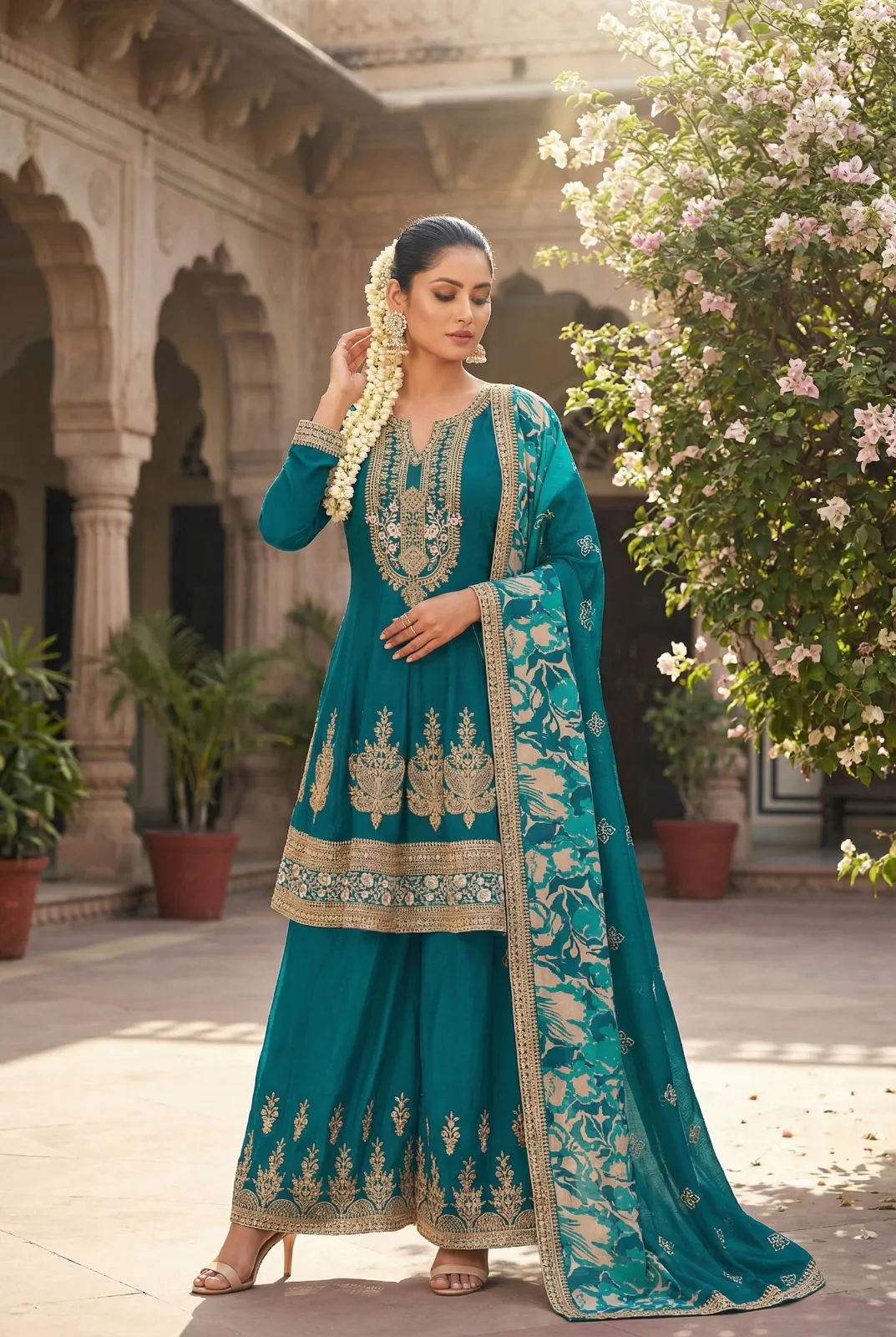 • Bottom: Heavy Premium Chinon With Embroidery Front And Back Work