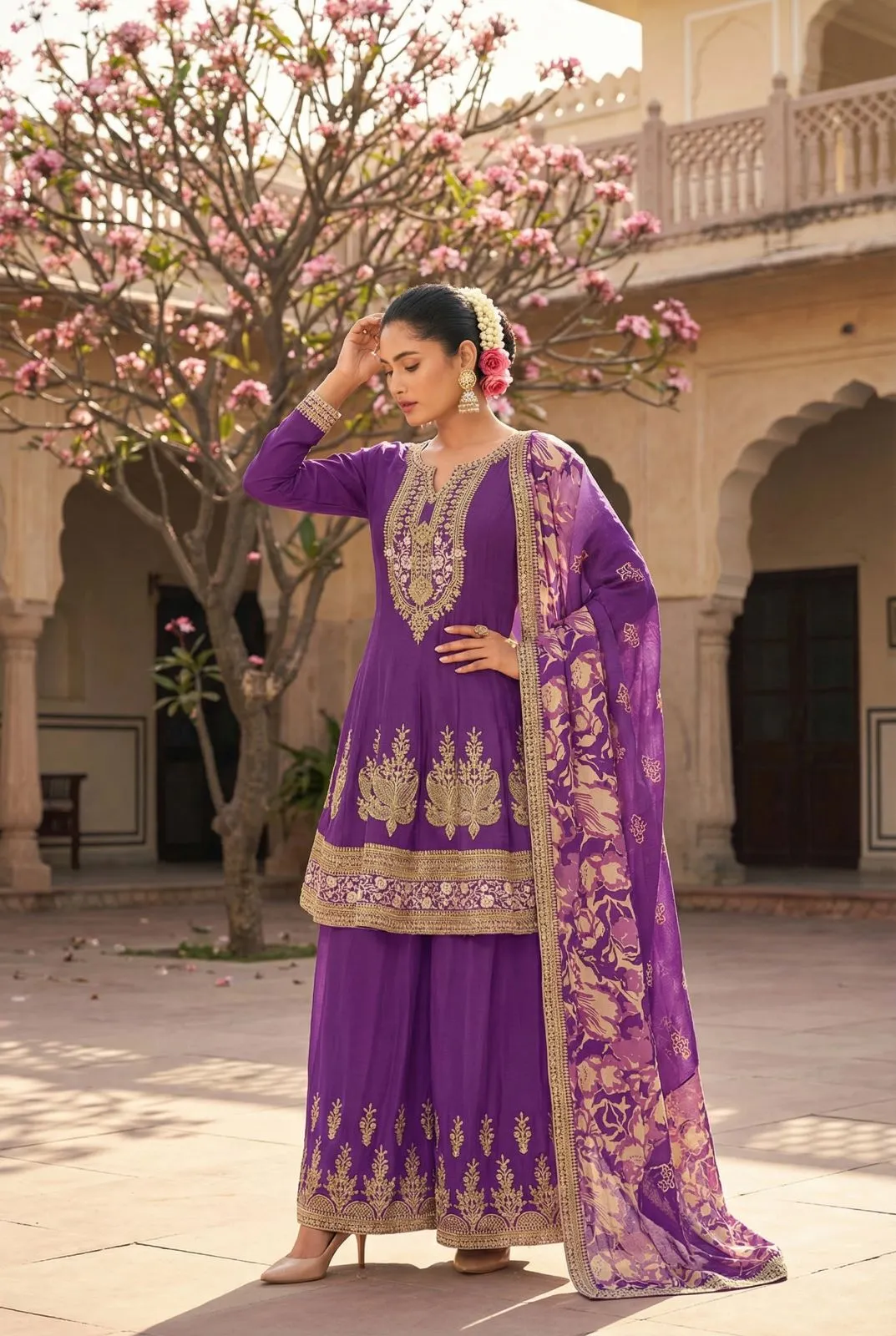 • Dupatta: Heavy Premium Chinon With Digital Print And Four Side Embroidery Work
