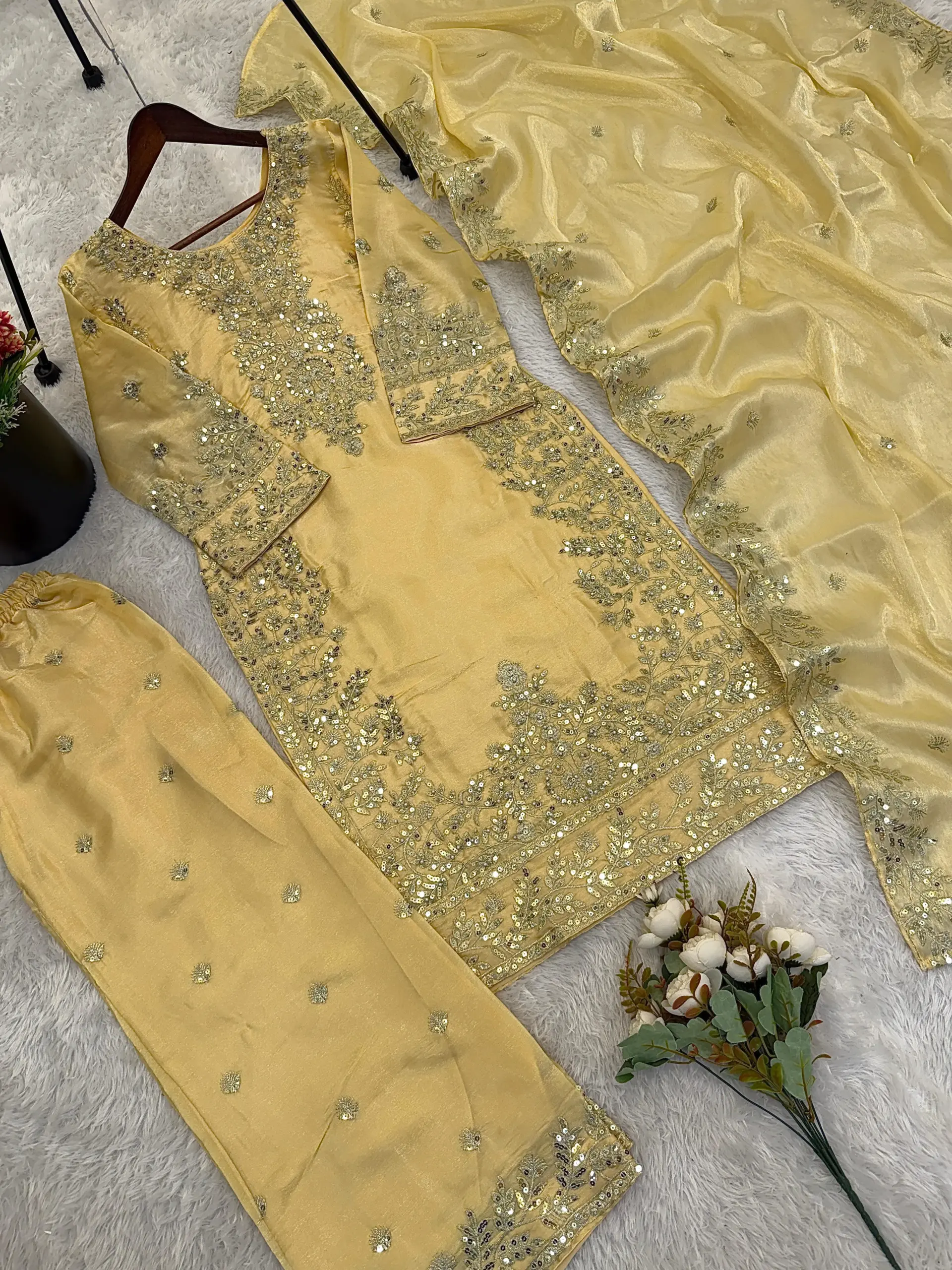 • Plazzo Fabric: Gmy Silk With Embroidery Sequence Work
