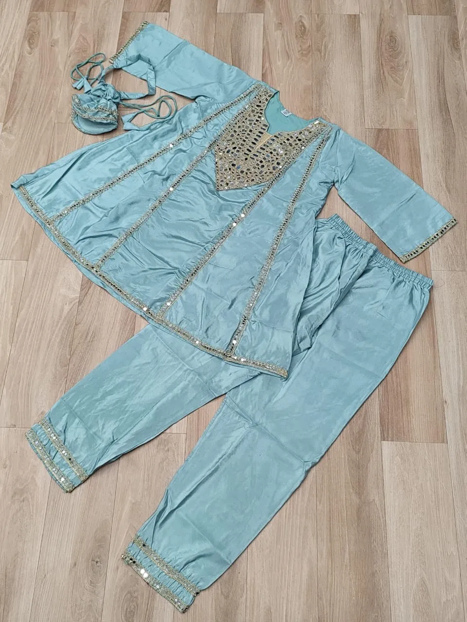 • Kurti: H O Fabrics With Real Mirror Embroidered Work