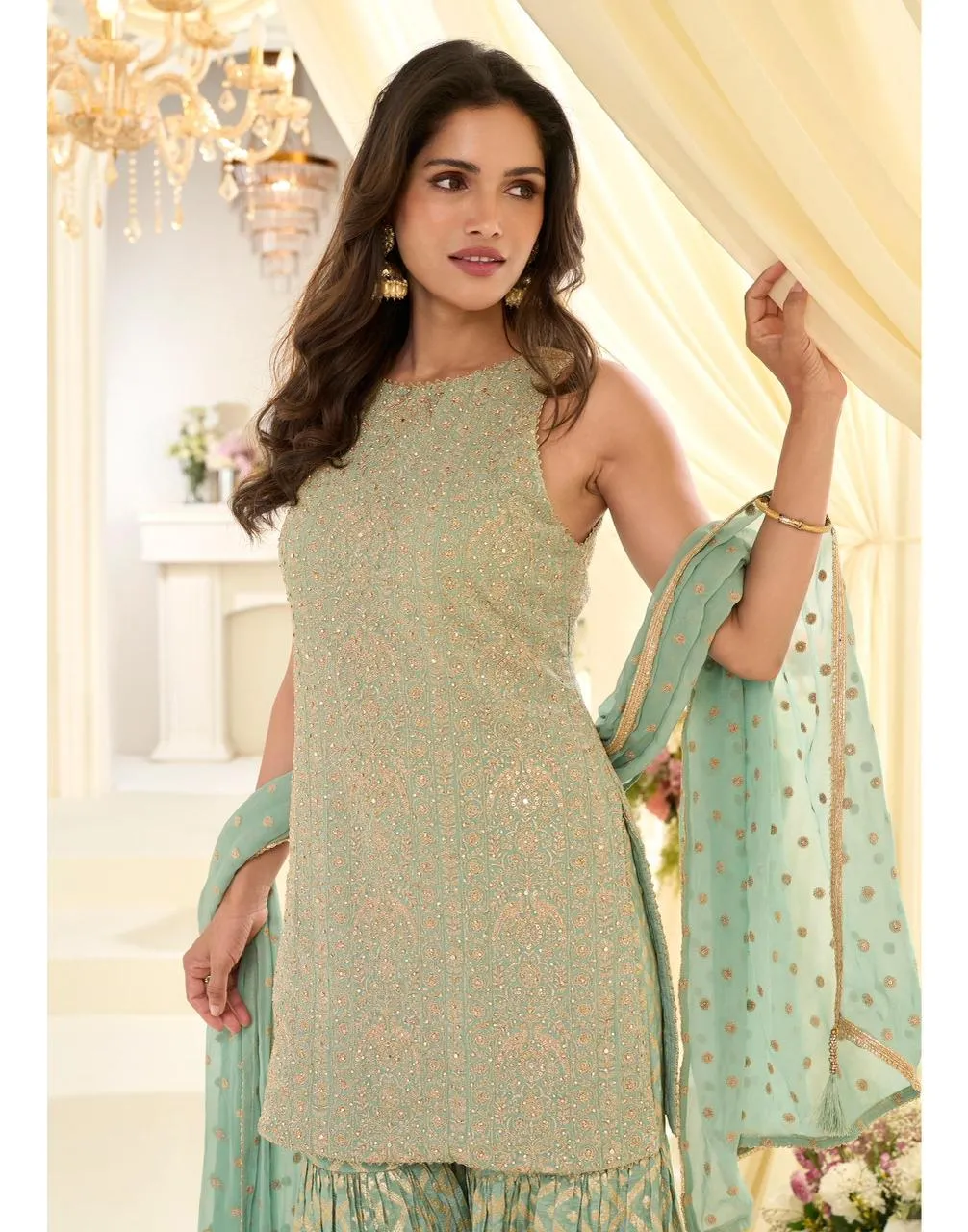 - Bottom: Viscose Jacquard Embroidered Gharara