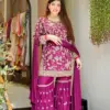 - Plazzo: Heavy Faux Georgette With 5mm Embroidery Sequence Work, Heavy Micro Cotton Inner