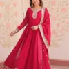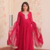 • Gown: Faux Blooming Georgette With Zari & Sequins Embroidered Work