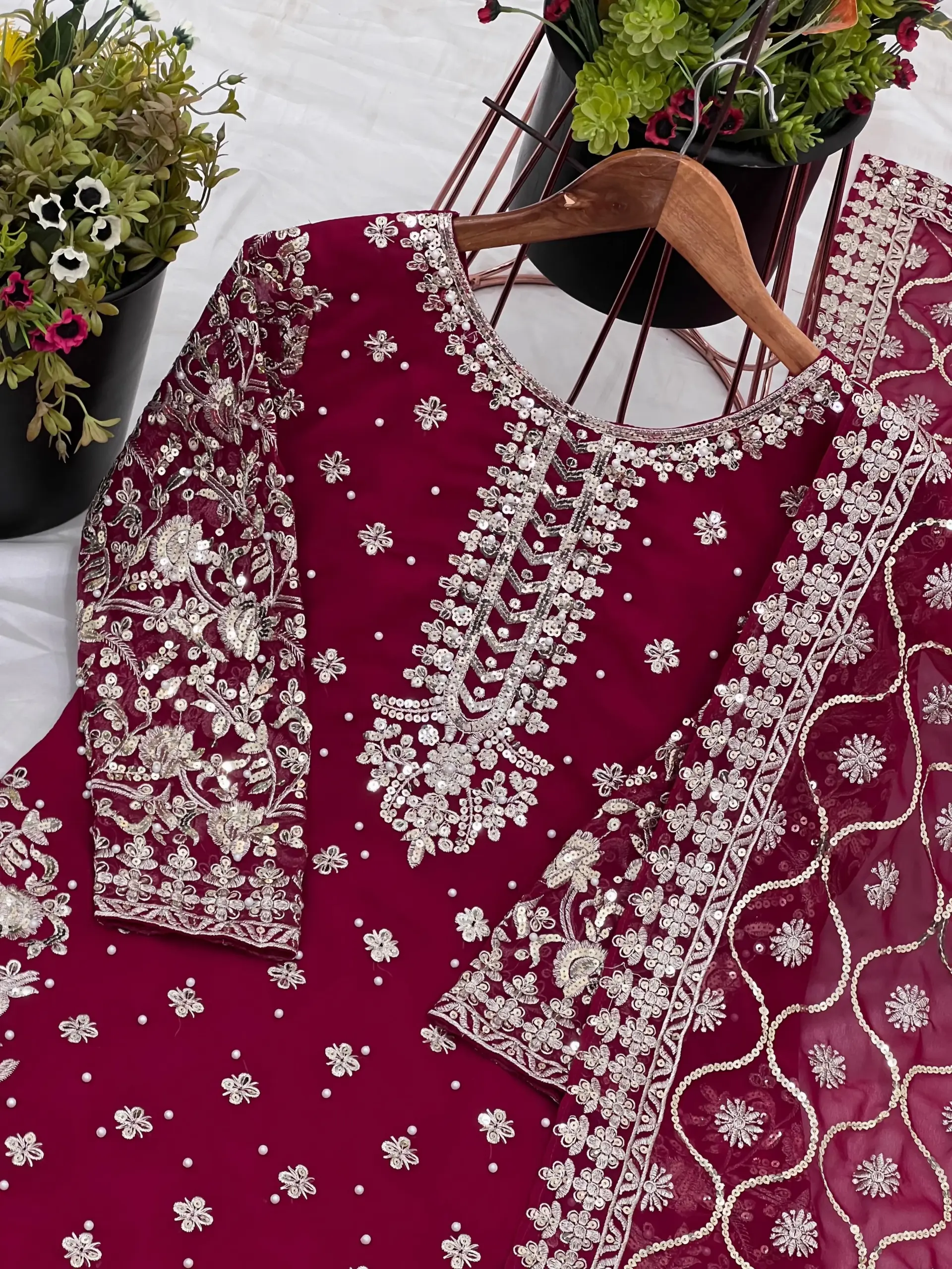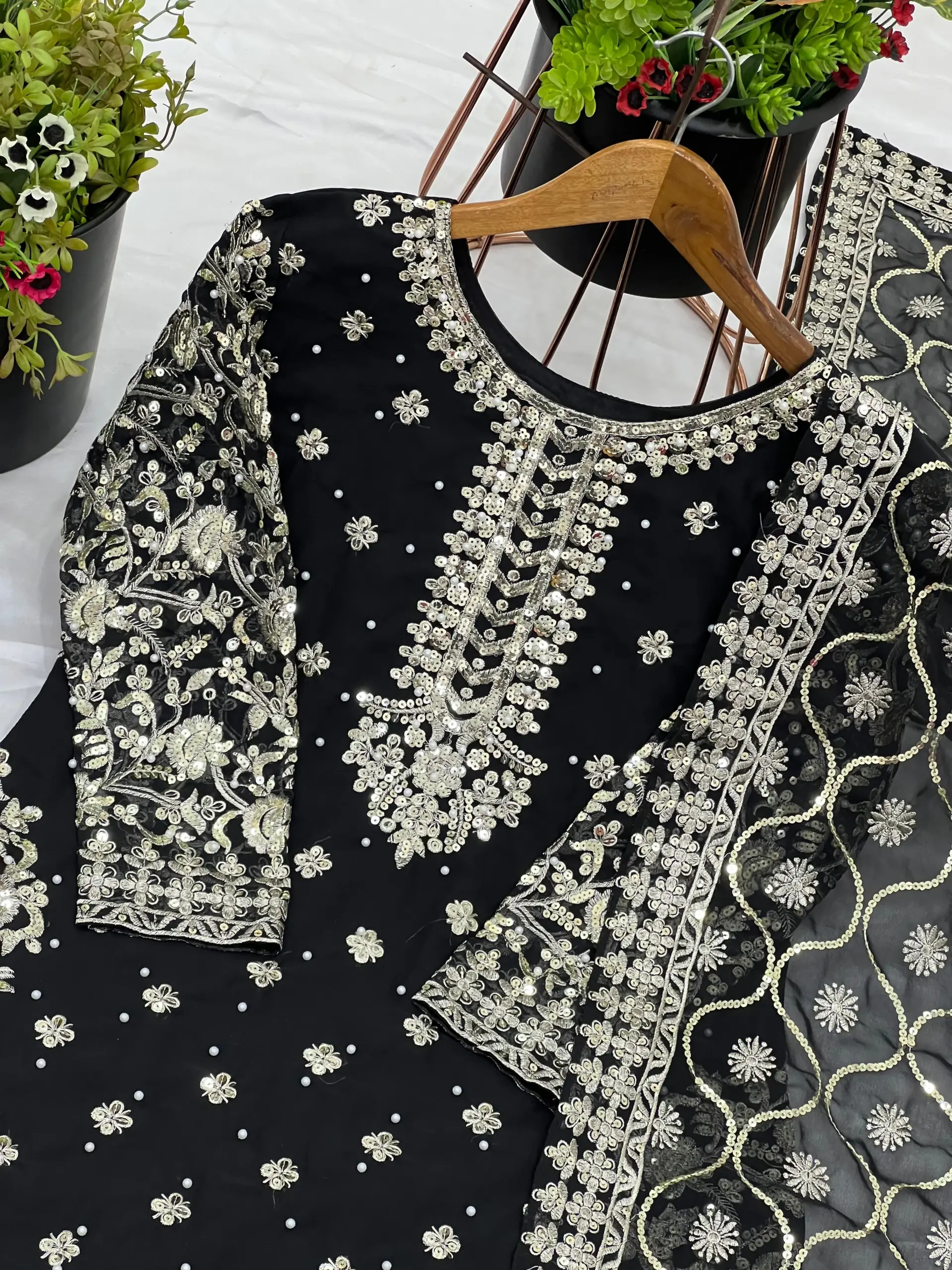 - Dupatta: Heavy Faux Georgette With 5mm Embroidery Sequence Work