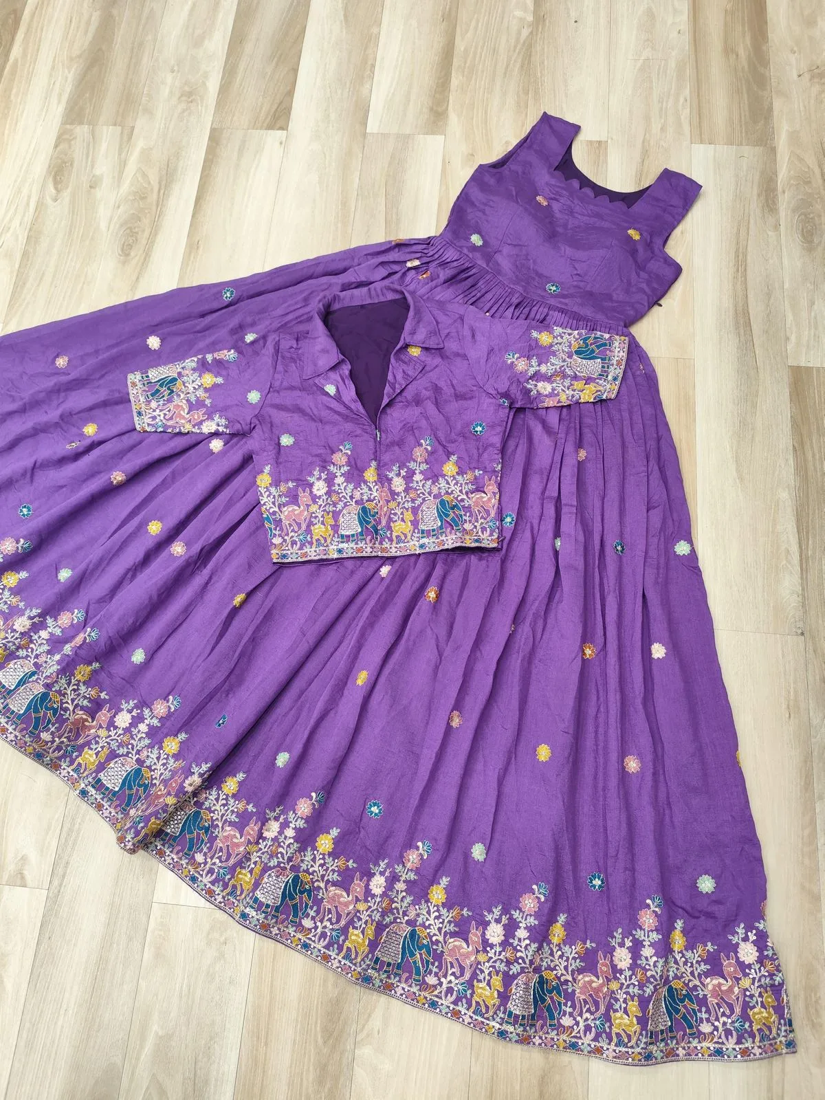 - Gown: Vichitra Silk With Sequins, Zari & Thread Embroidered Work