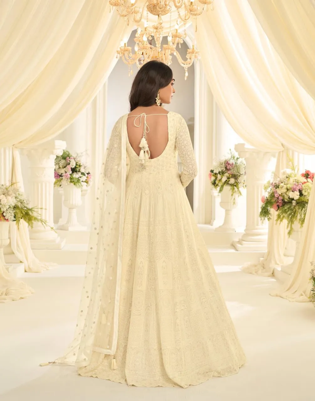- Gown: Premium Real Georgette (heavy Festive Look Lucknavi Chikankari Front And Back Fully Heavy Embroidered)
