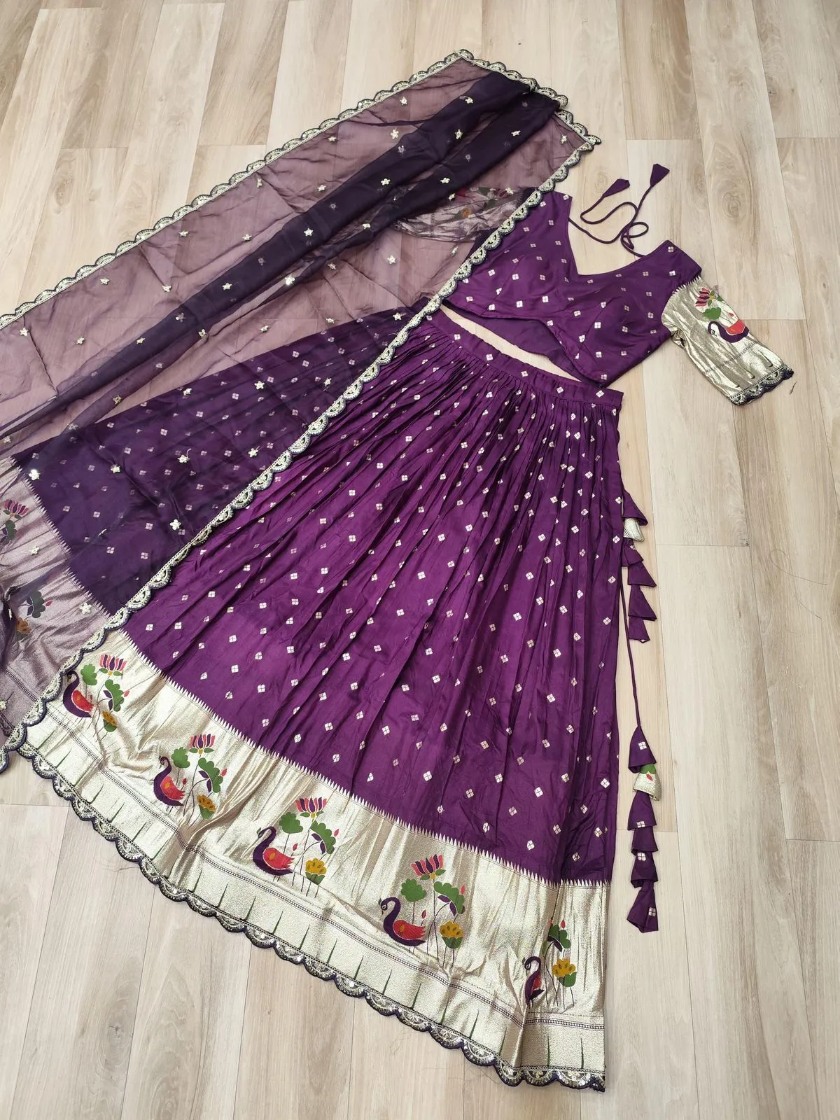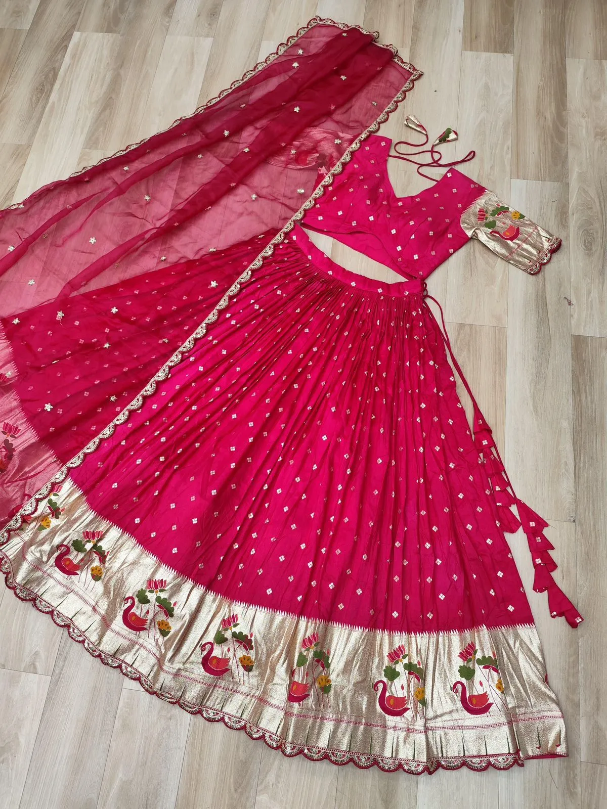 - Lehenga: Dola Silk With Meena Weaving, Sequins Coding, Embroidered Lace Work