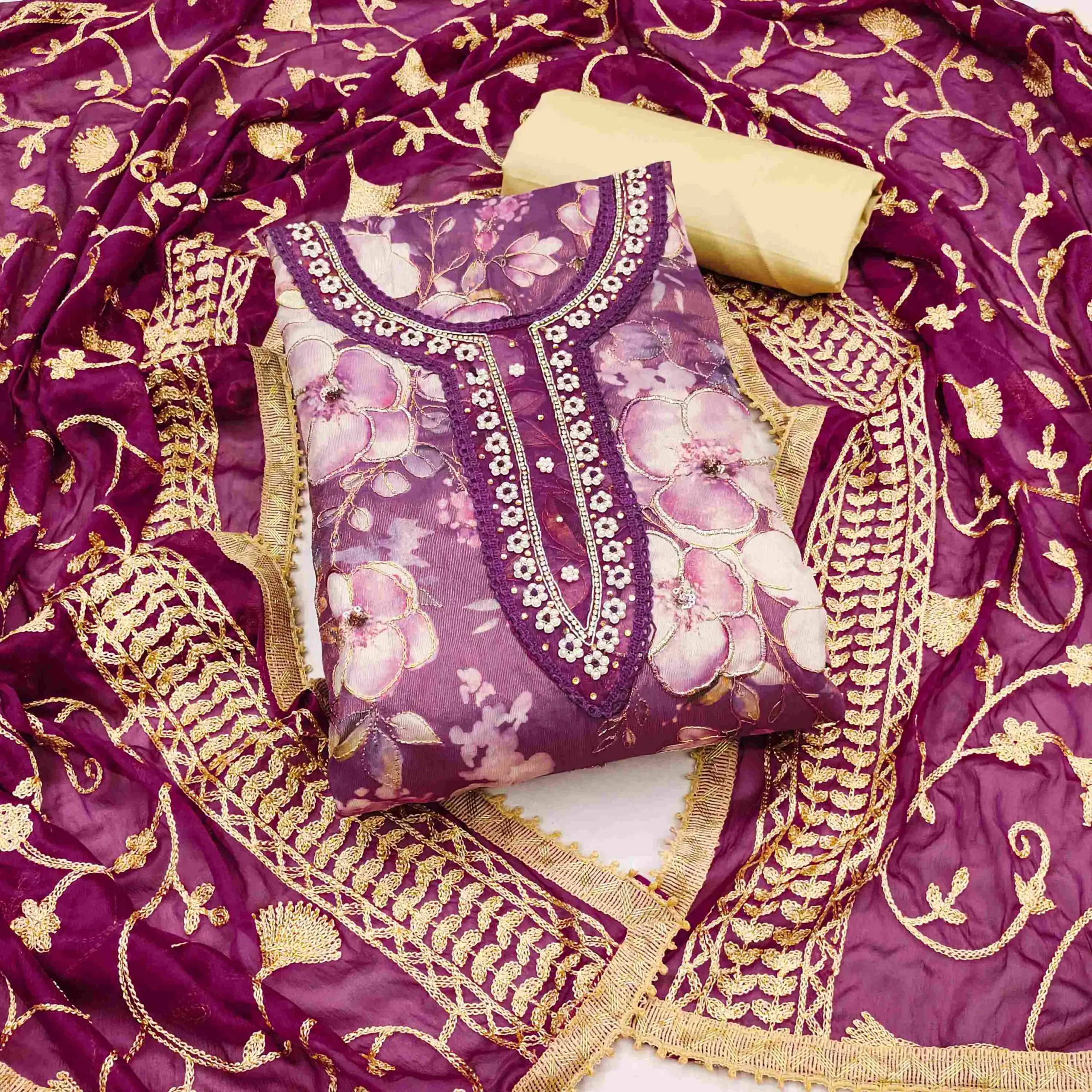 - Dupatta: Nazmin Chiffon Work Dupatta