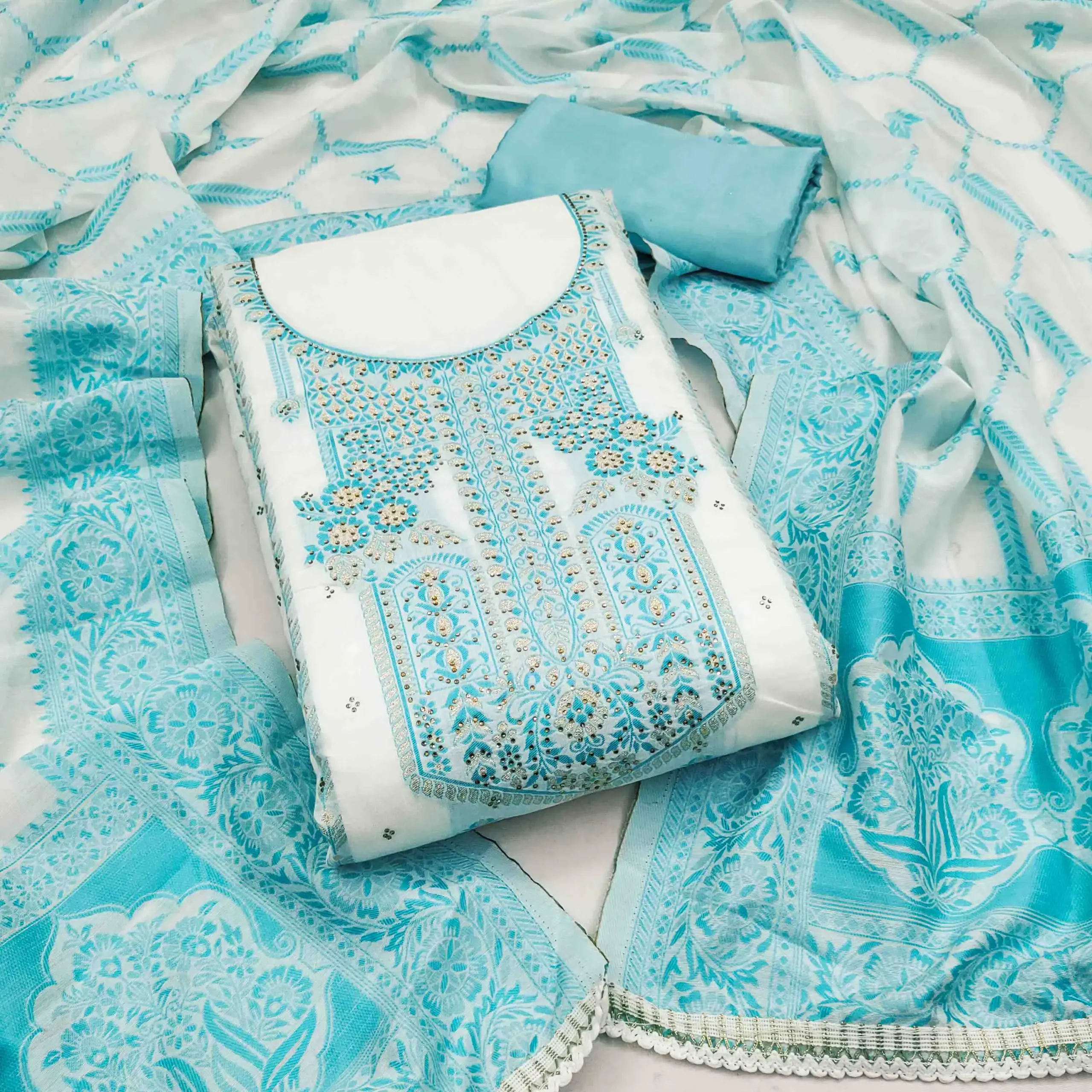 • Top: Muslin Cotton Silk Jacquard With Hand Work