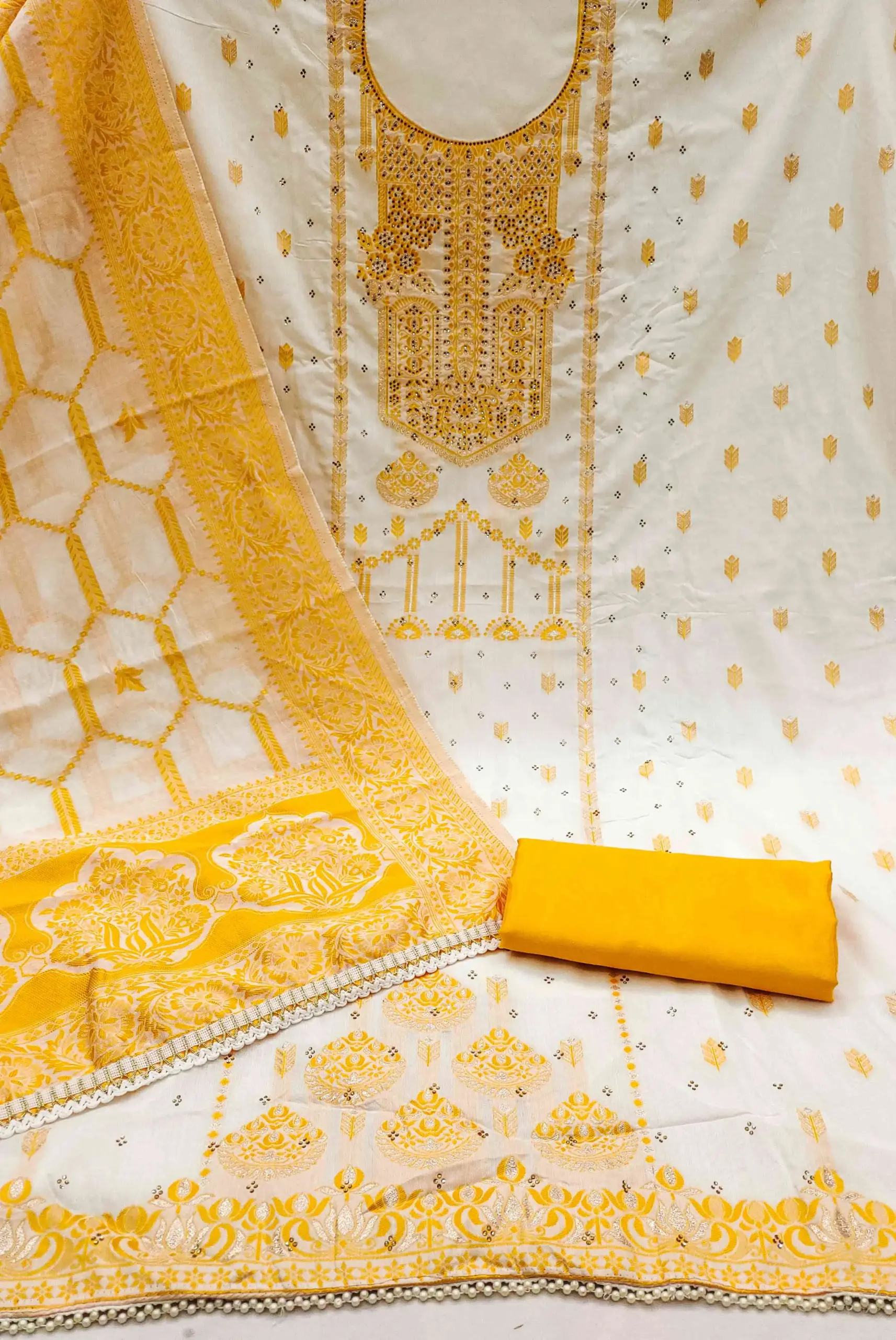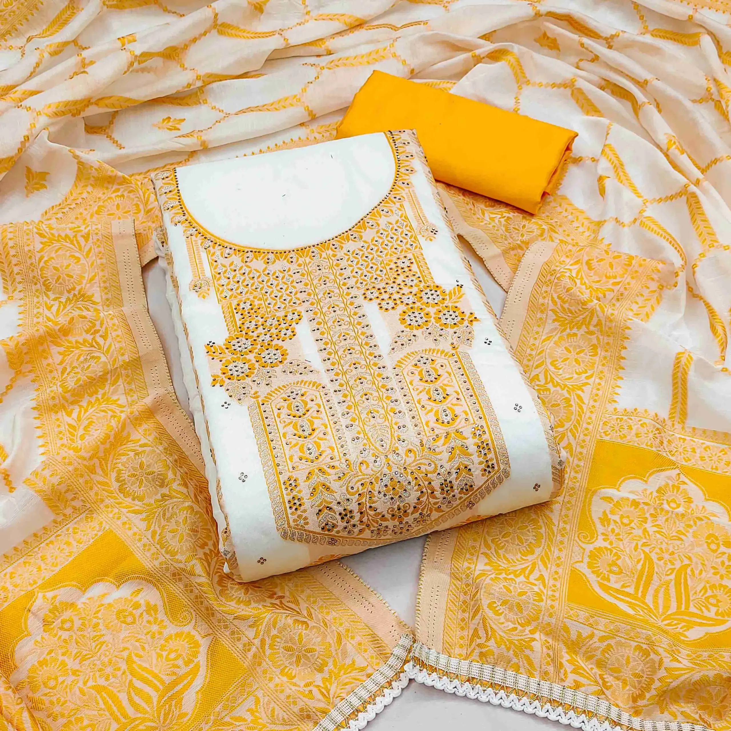 - Top: Muslin Cotton Silk Jacquard With Hand Work