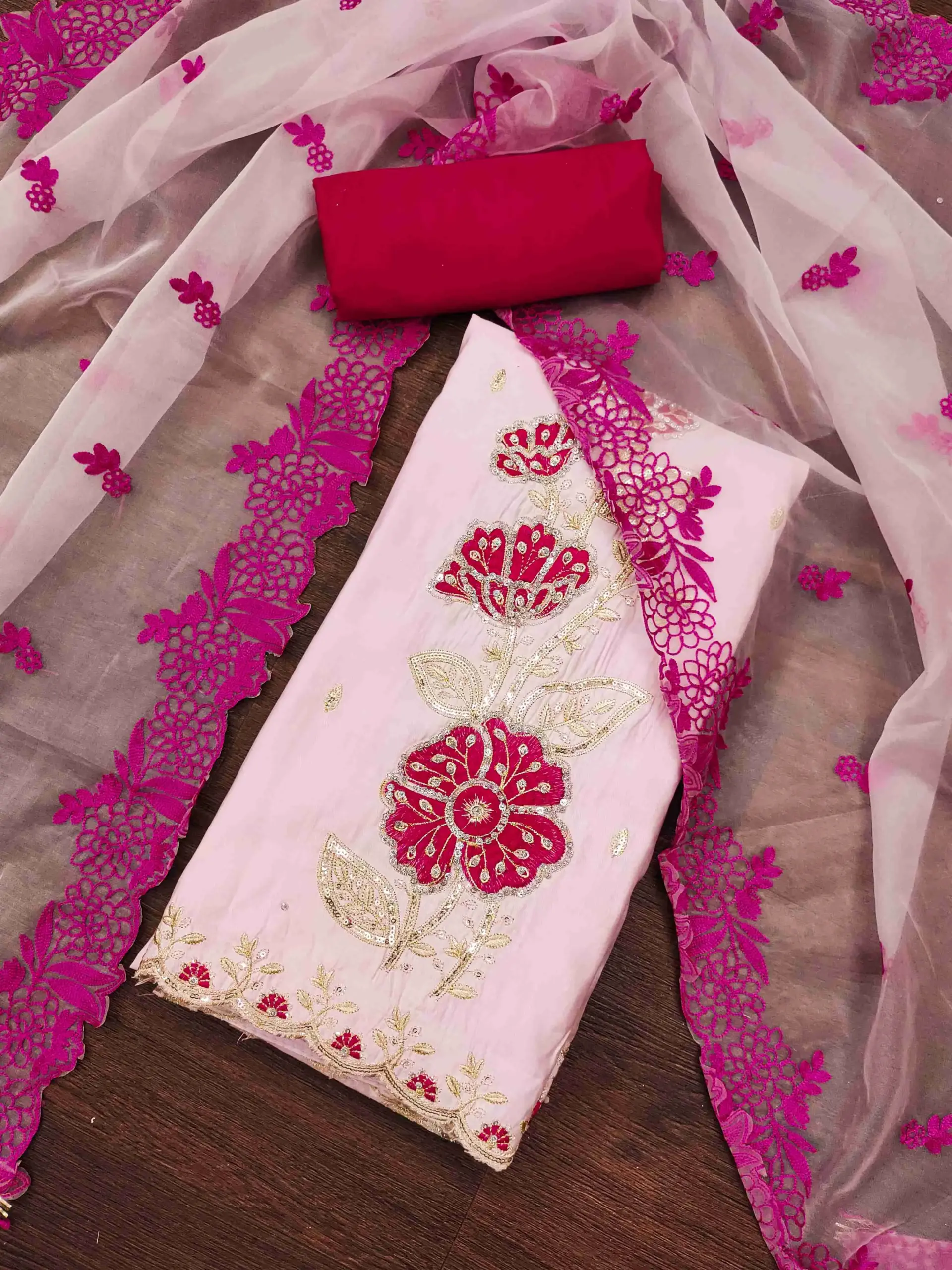- Top: Premium Roman Silk With Embroidery Work With Hand Work