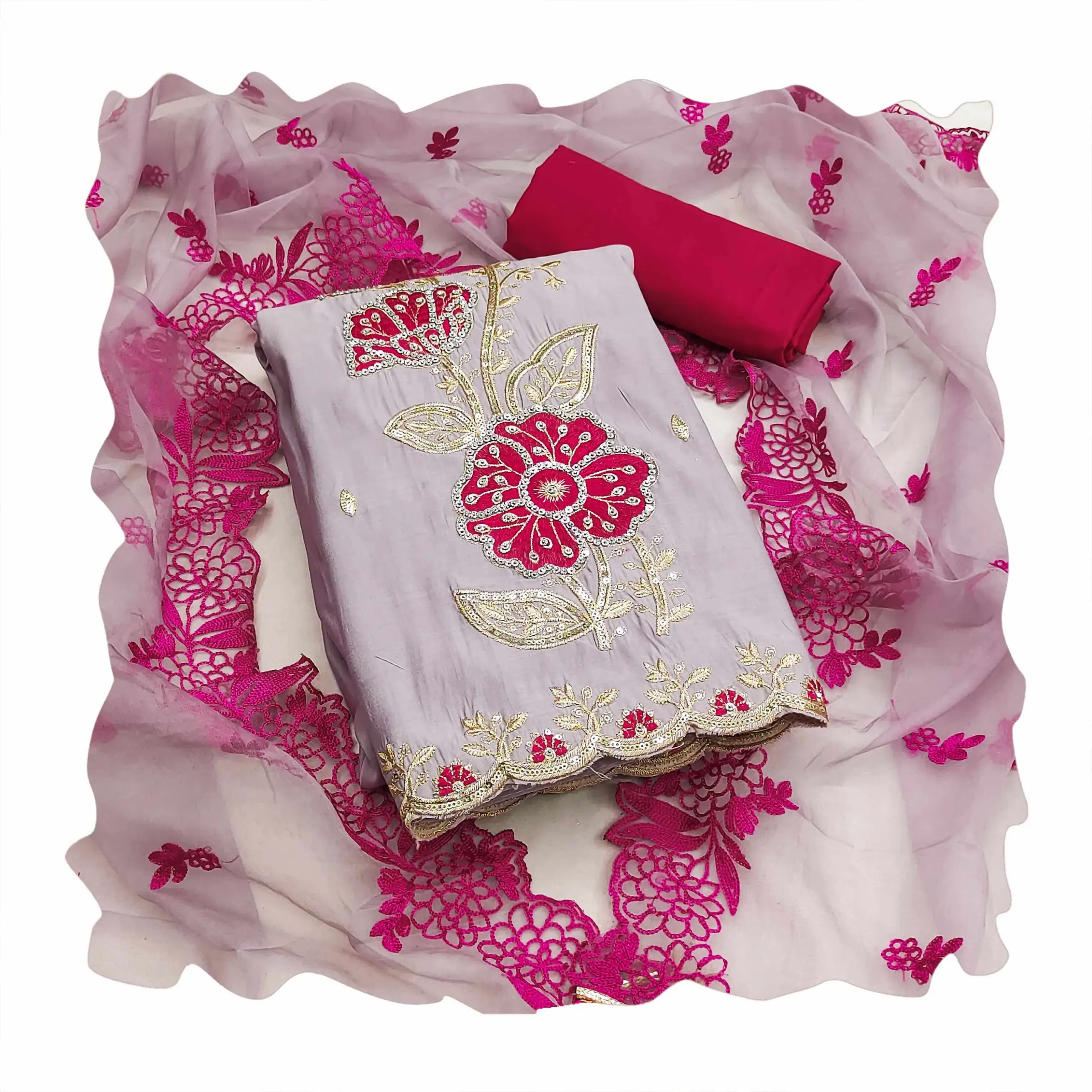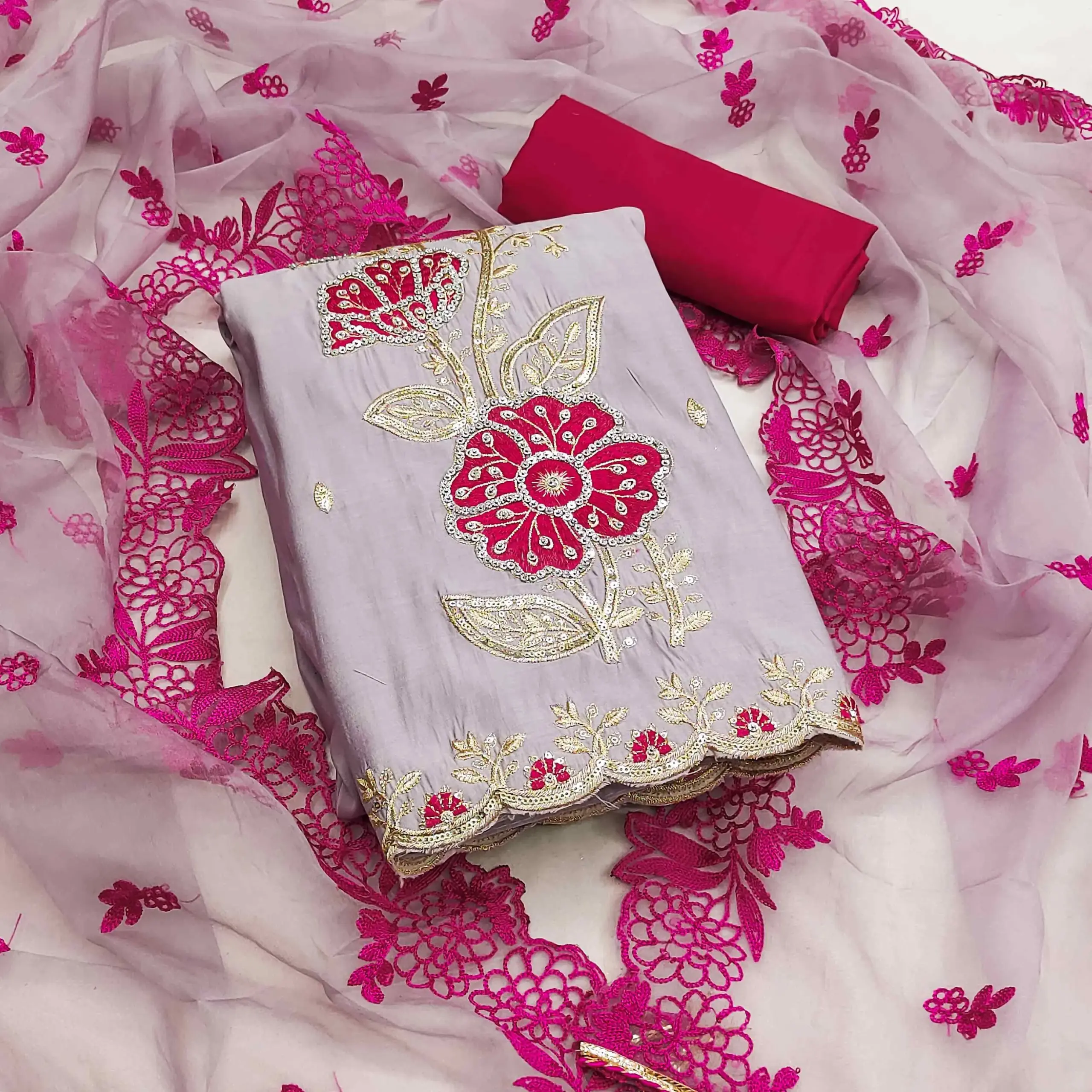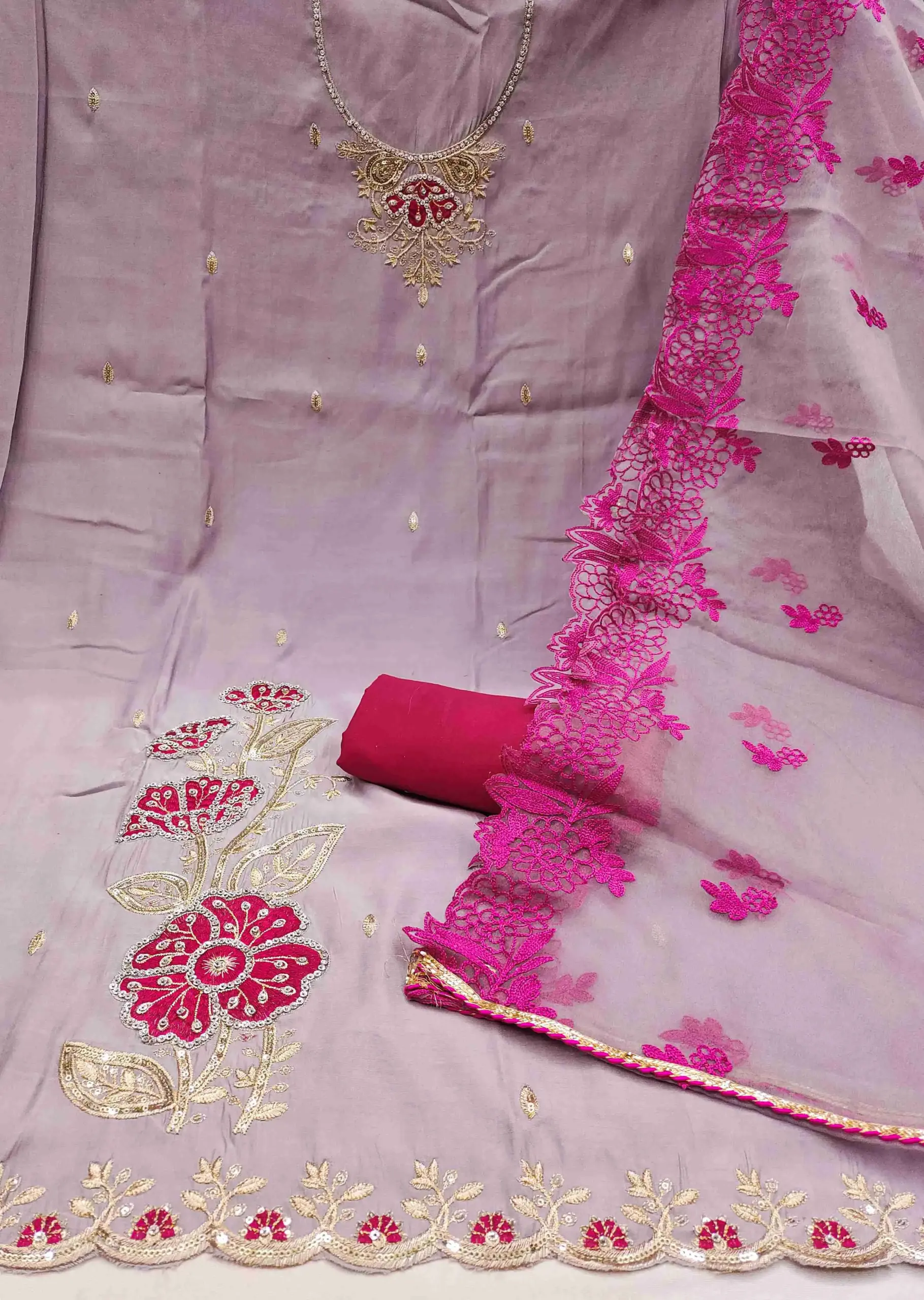 - Top: Premium Roman Silk With Embroidery Work With Hand Work