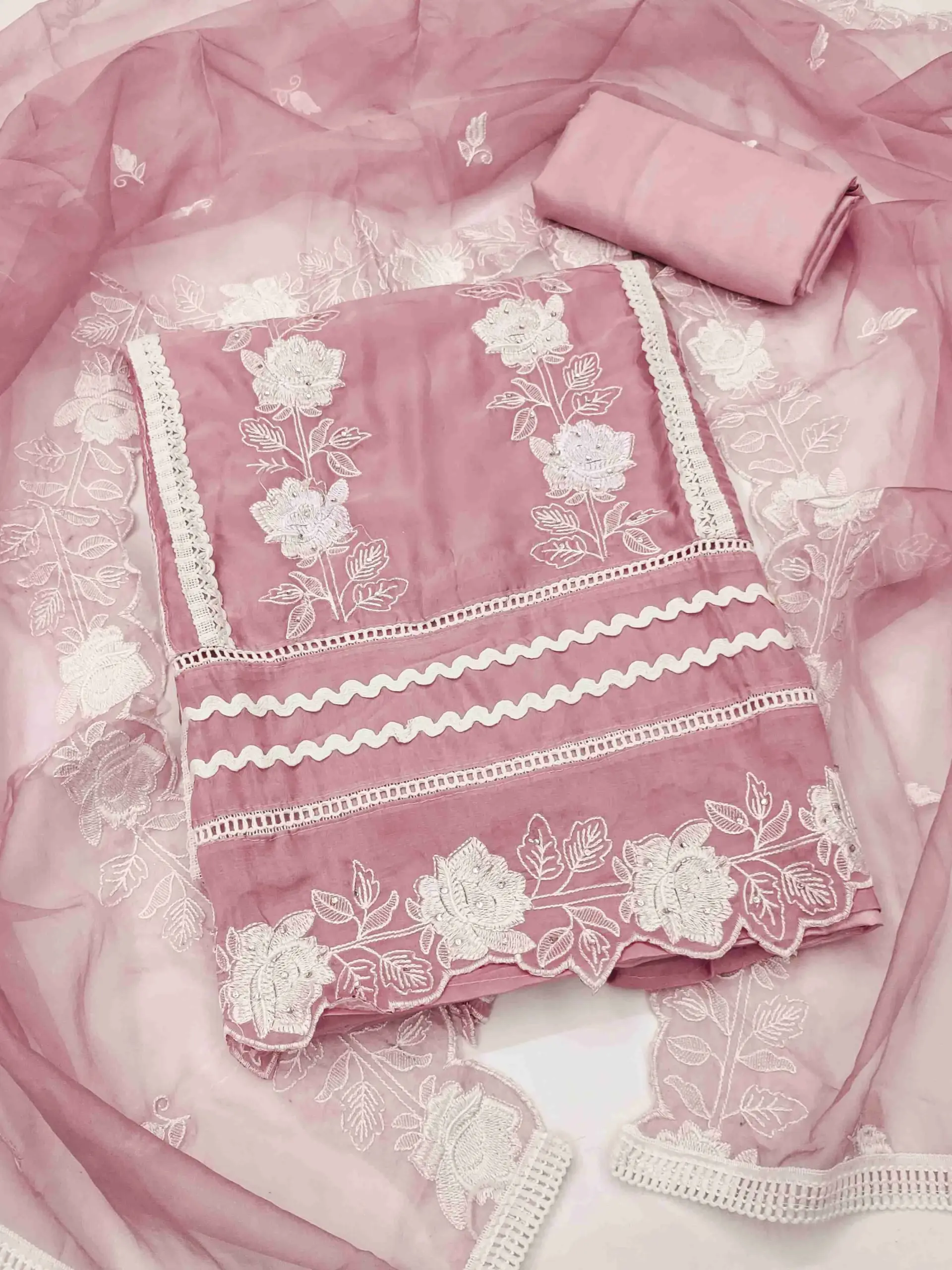 - Top: Pure Organza With Embroidery Work
