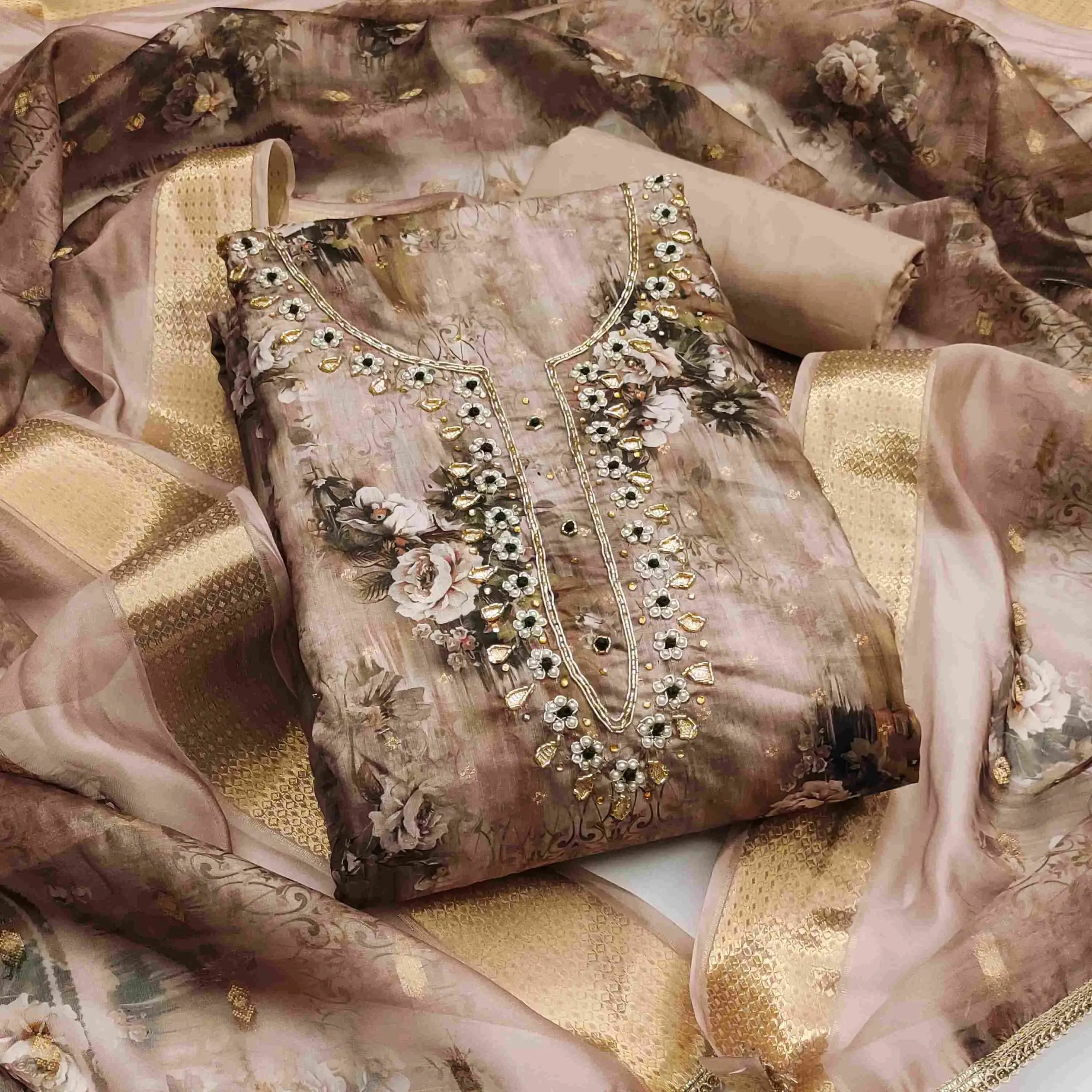 - Dupatta: Organza Banarasi Digital Dupatta