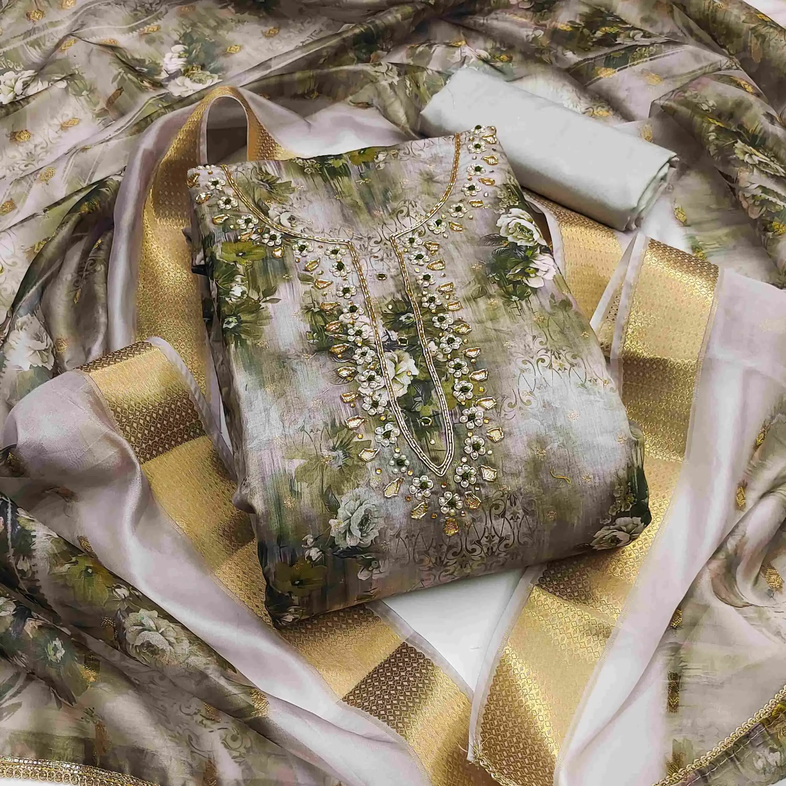 - Top: Muslin Banarasi Cotton Silk With Hand Work