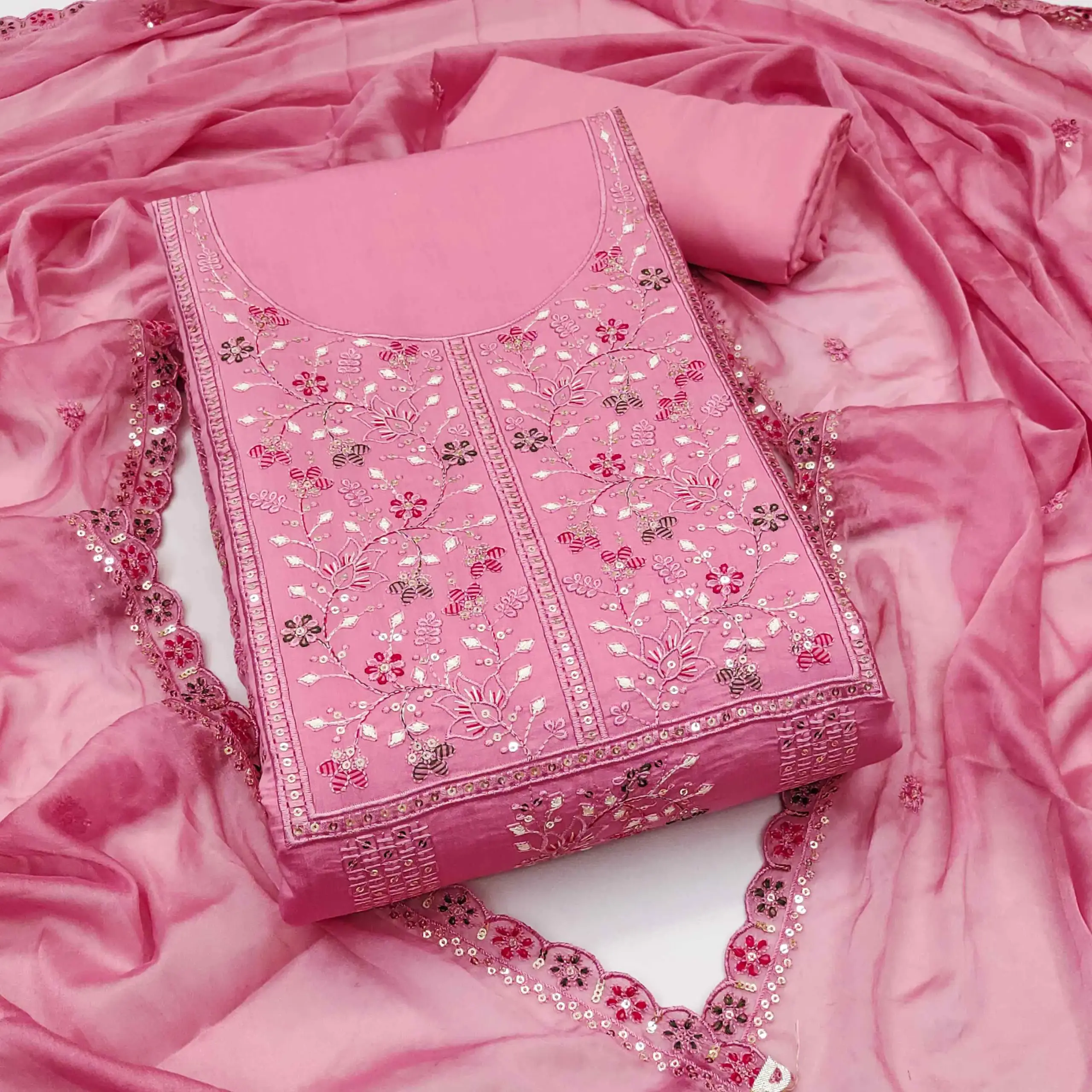 • Top: Pure Cotton Silk With Embroidery Work – 2.40 Meters
