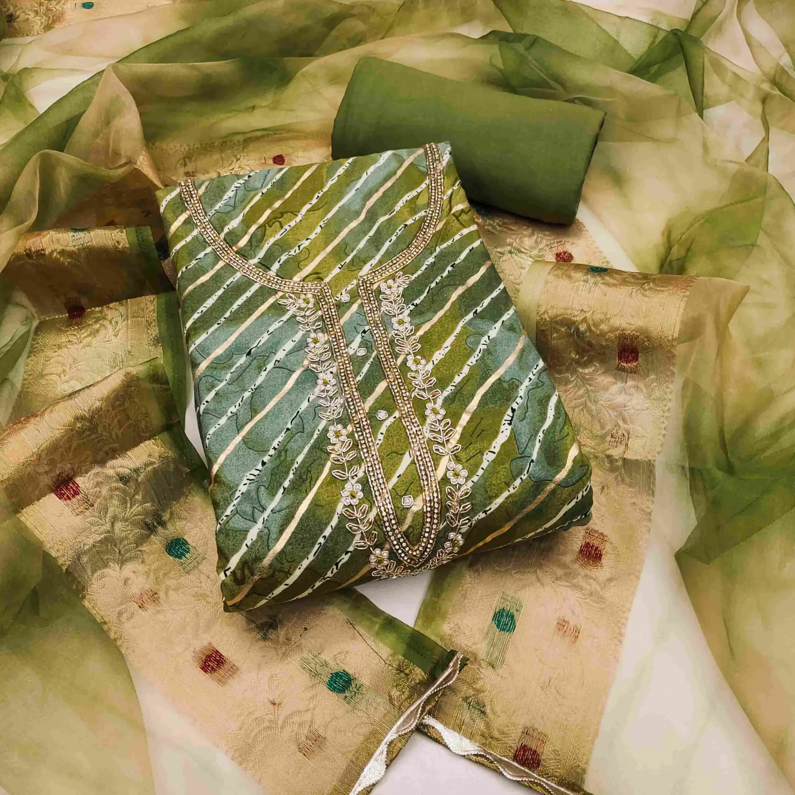- Dupatta: Soft Banarasi Saburi Dupatta – 2.15 Meters
