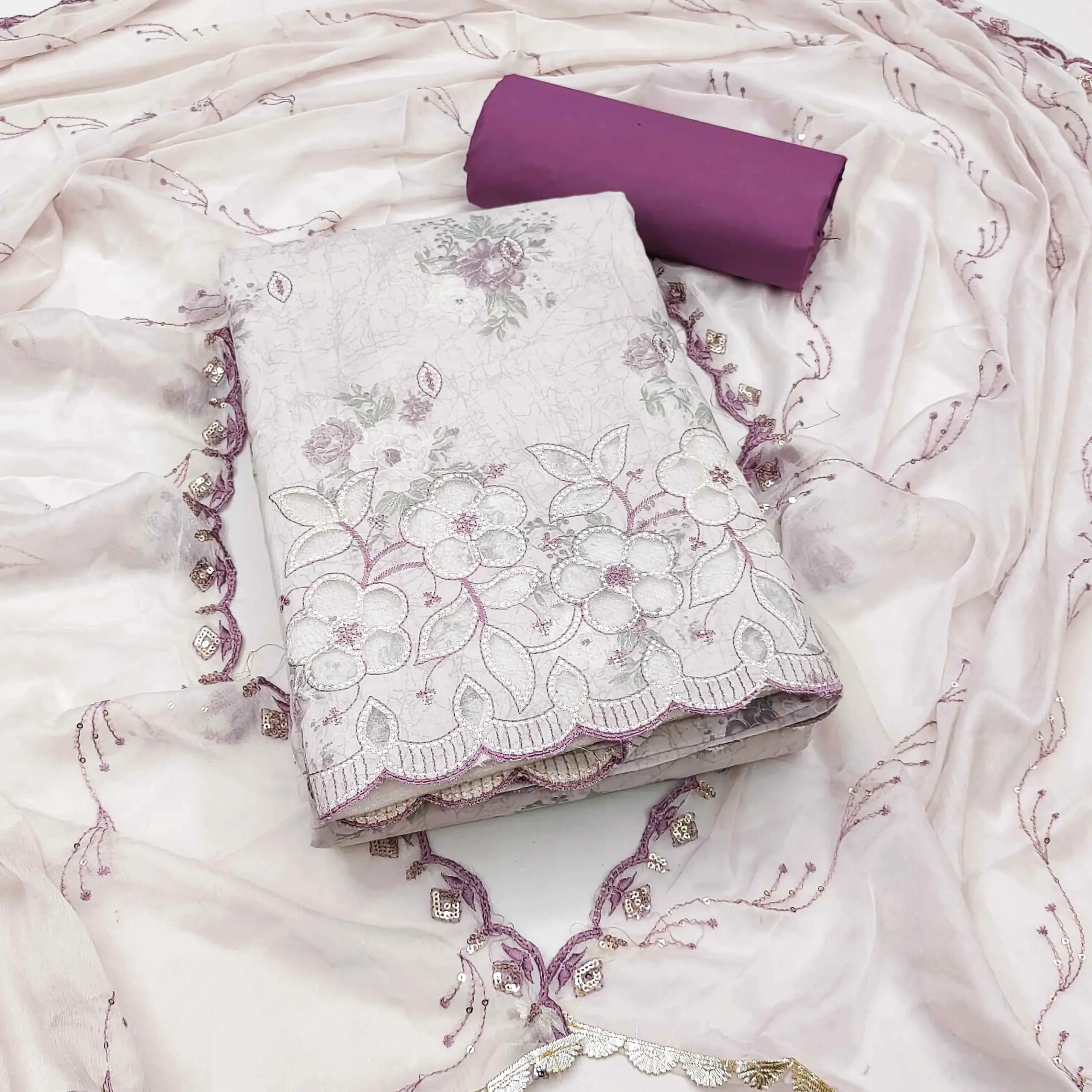 • Top: Cambric Cotton Print With Embroidery Work – 2.05 Meters