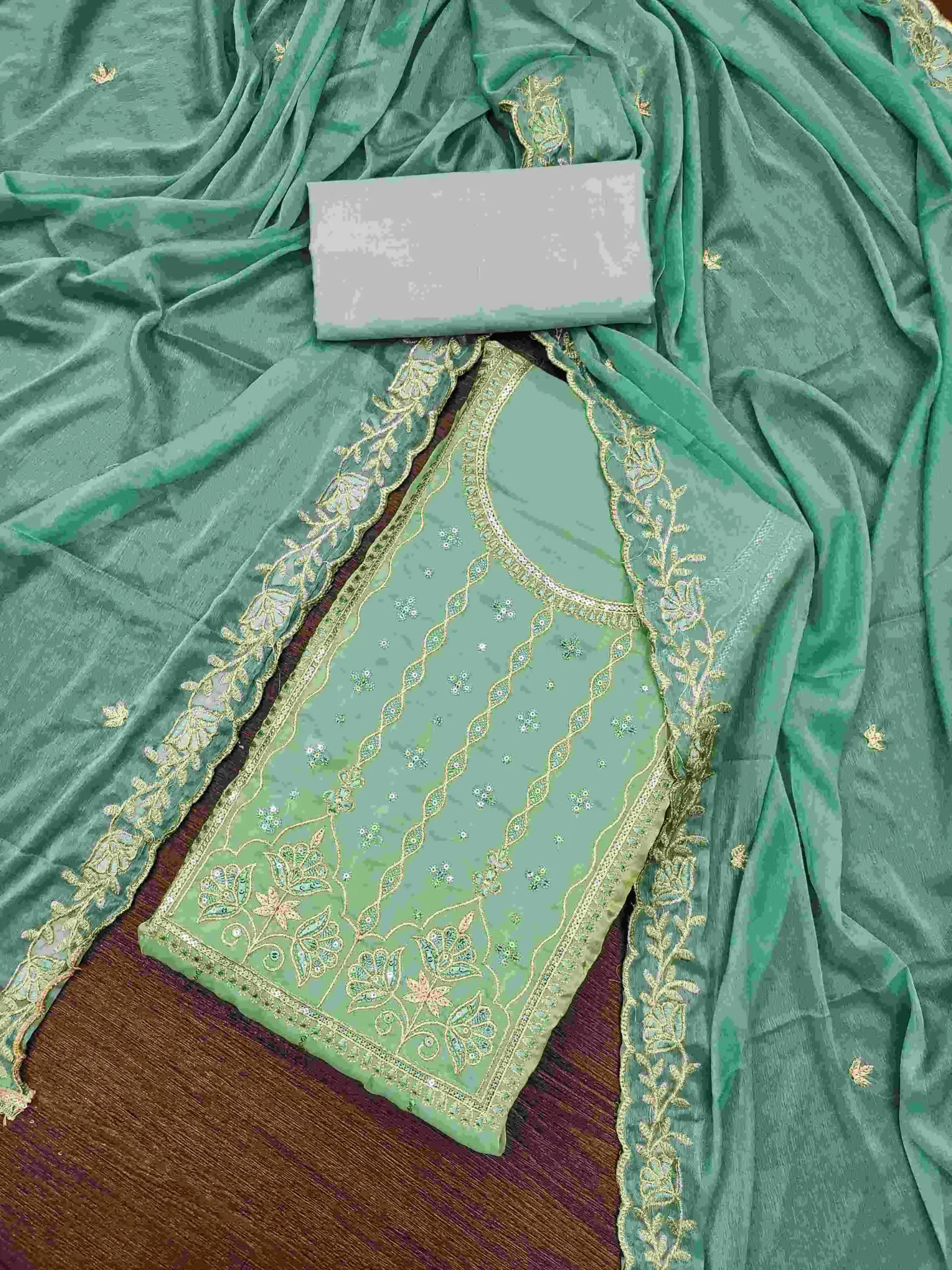 - Top: Viscose Fendy Satin With Embroidery Work (2.40