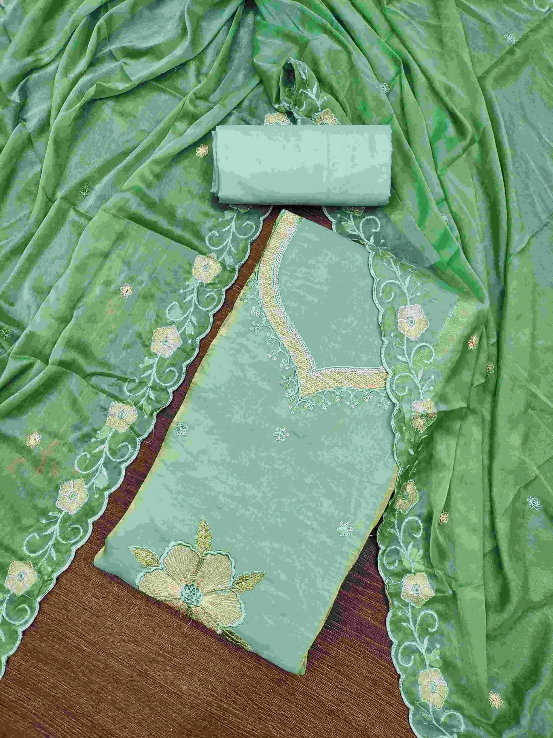 - Top: Viscose Fendy Satin With Embroidery Work (2.40