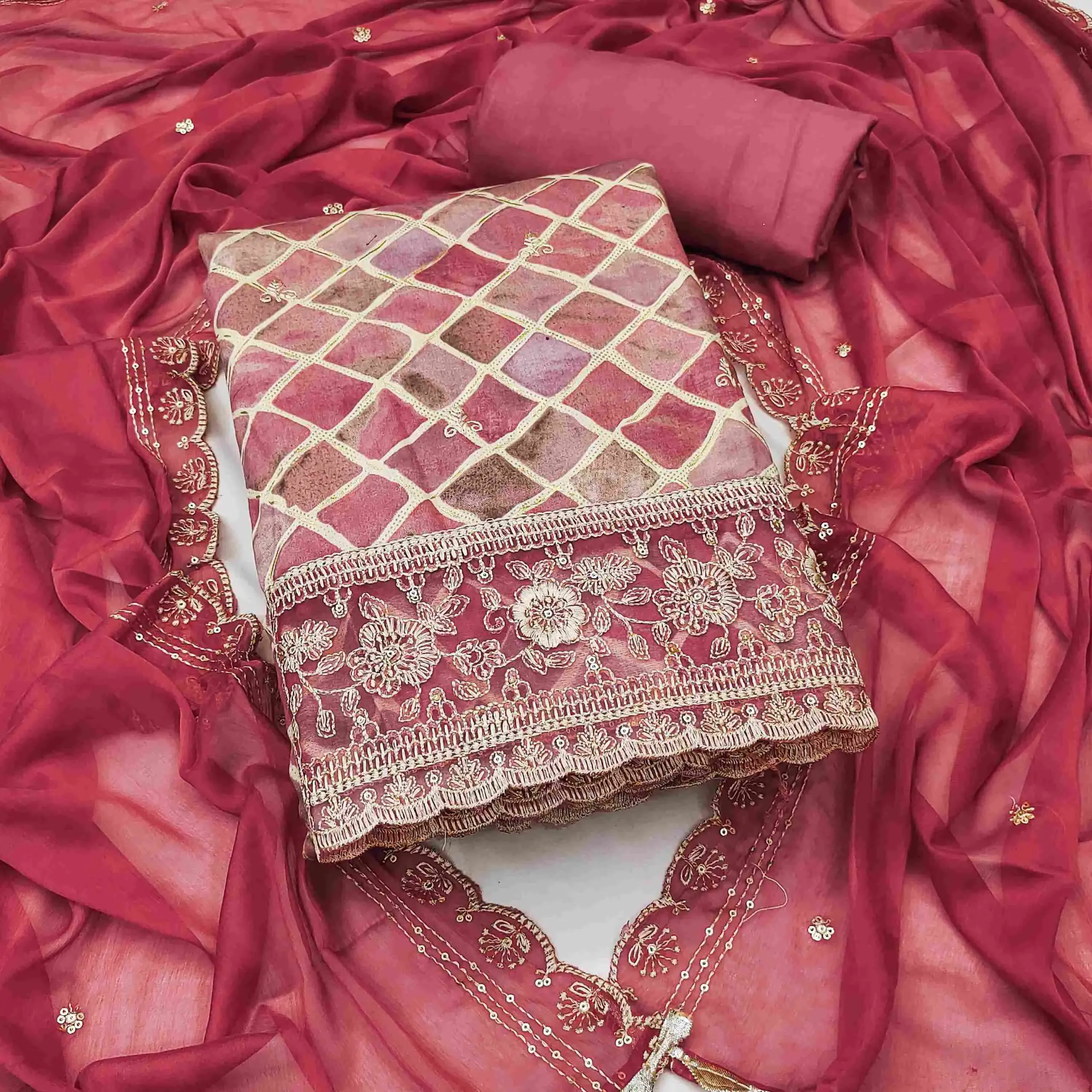 - Dupatta: Nazmin Work Dupatta – 2.15 Meters