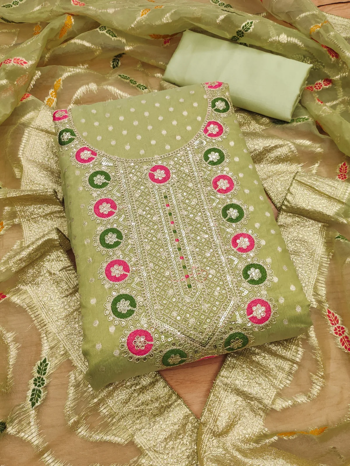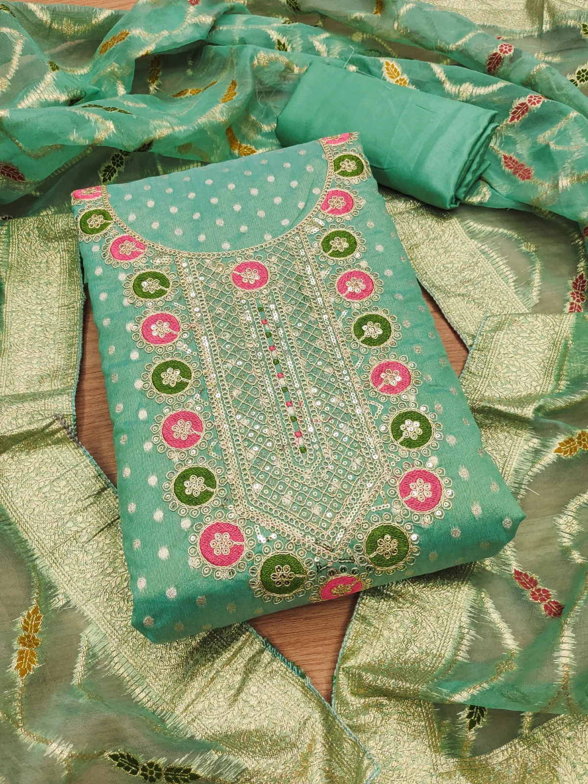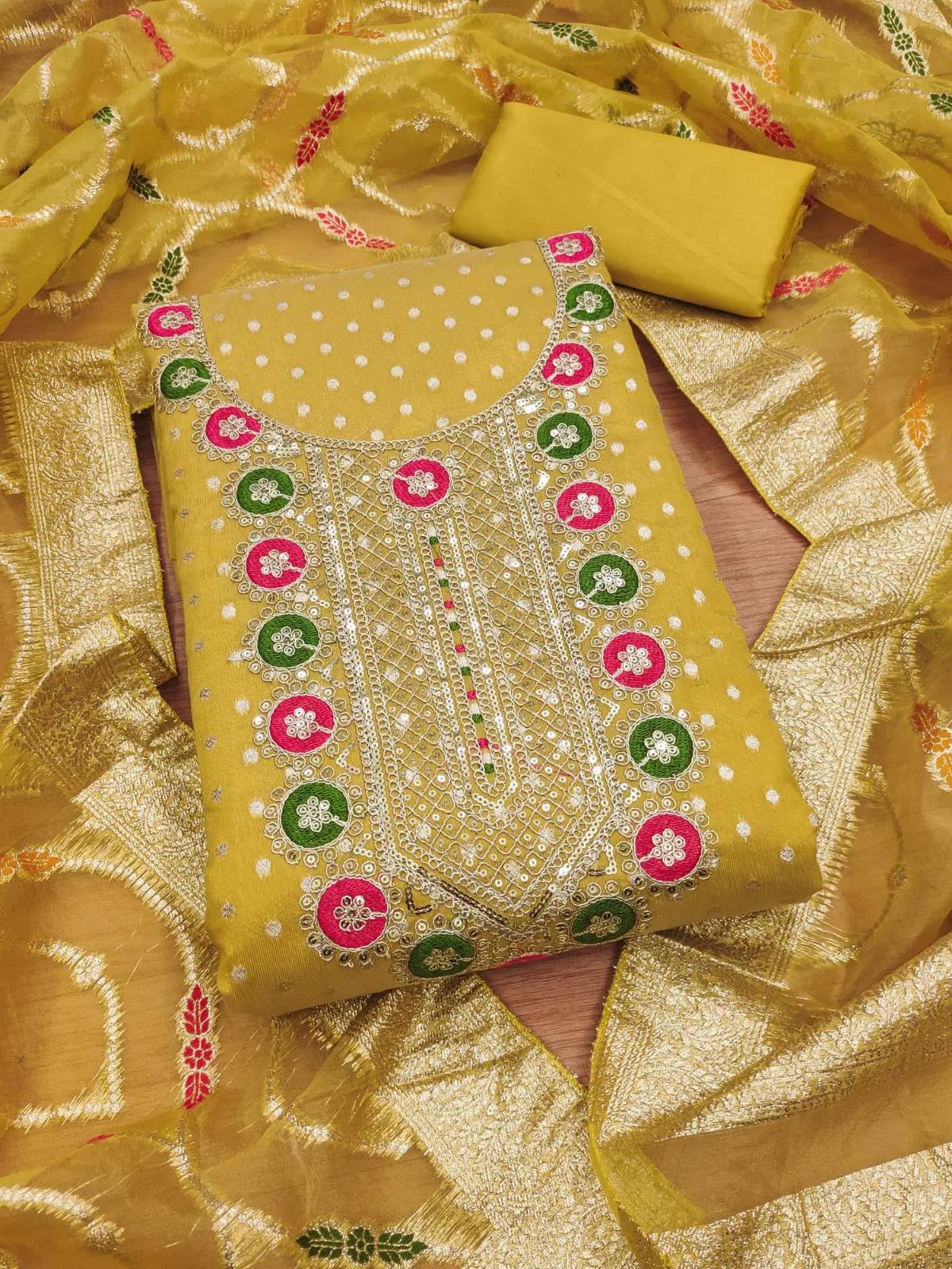 - Dupatta Fabric: Organza Silk Meenakari Fancy Zari