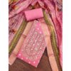 Gajari Pink Woven Banarasi Cotton Silk Dress Material Accented With Sequins Embroidery