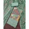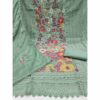 Green Roman Cotton Silk Dress Material Adorned With Elegant Floral Thread Embroidered Work