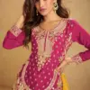 | Details | Top Real Chinon Dupatta Real Chinon Plazoo Real Chinon Embroidery & Handwork Only |