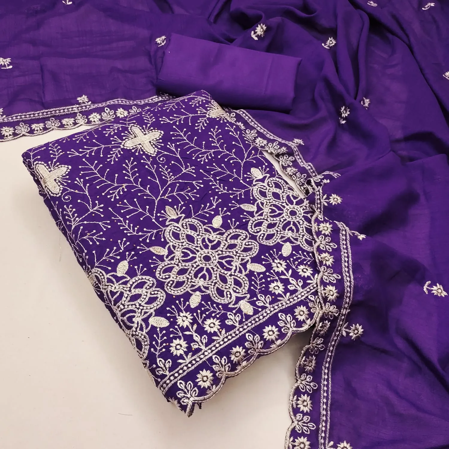 | Details | Top Real Chinon Dupatta Real Chinon Bottom Real Chinon Embroidery Work & Hand Work |
