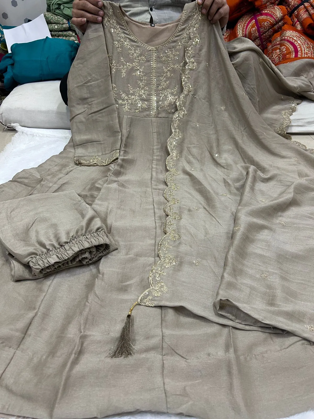 • Dupatta: Heavy blooming vichitra silk with embroidery cutwork