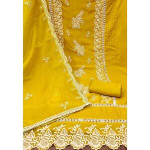 Mustard Floral Sequins Embroidered Organza Dress Material