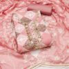 Peach Floral Printed Green Pure Cotton Dress Material With Moti & Gota Patti Handwork Embellishment