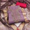 Purple Digital Printed Cotton Silk Dress Material With Intricate Moti & Sequins Handwork