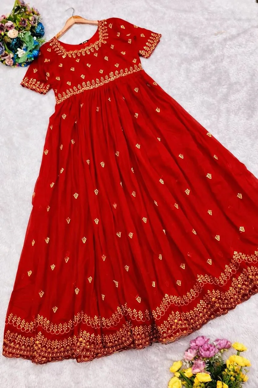 - & Work Fabric: Georgette Blooming With Embroidery Zari Sequins: Work