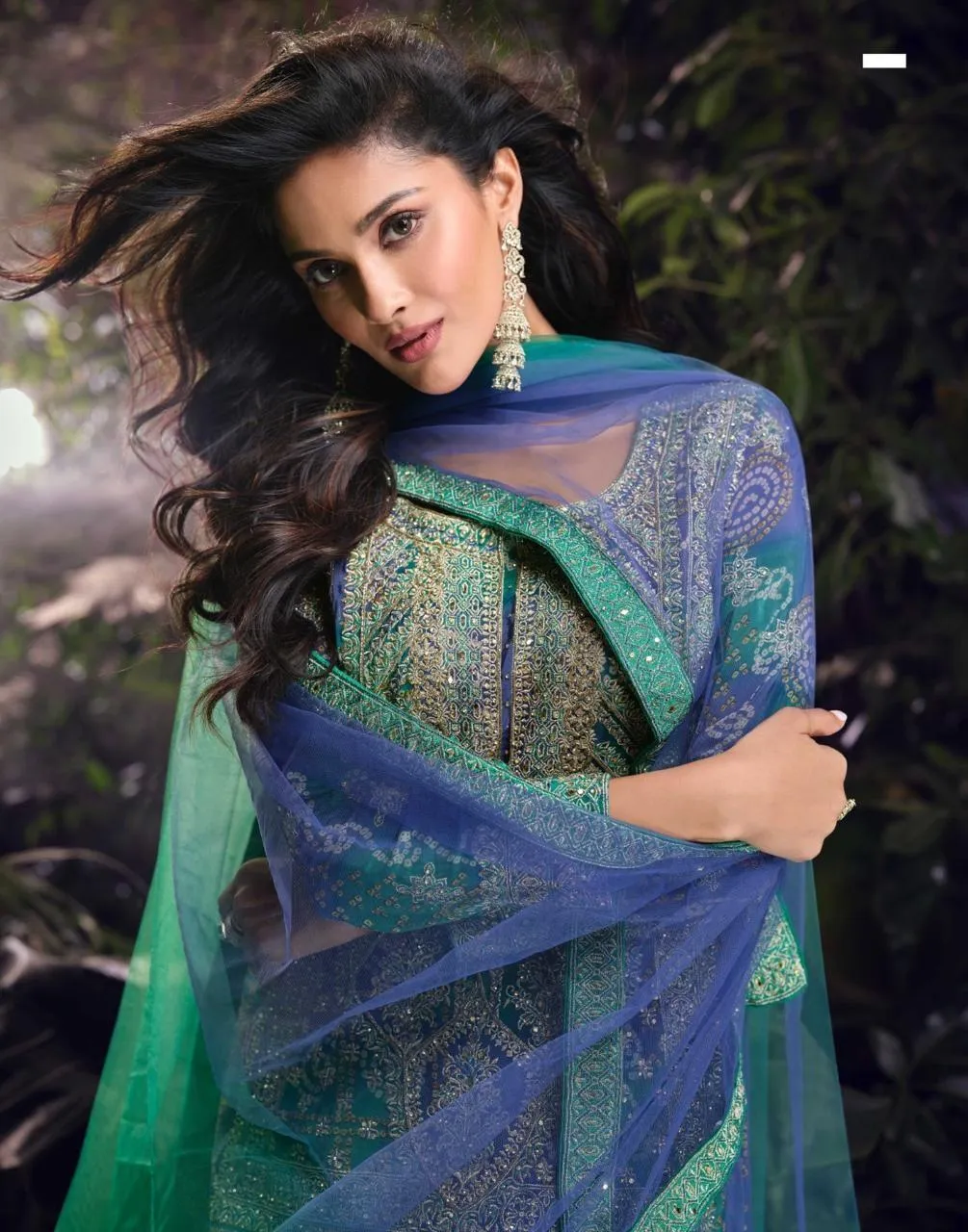 | Details | Premium Real Chinnon Silk (Heavy Look Embroidered Top with Hand Mirror Work, Embroidered Palazzo, Embroidered Net Dupatta) |