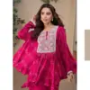 | Details | Premium Real Chinon Silk ( Embroidered Top With Hand Embellished Work Poncho Style With Plazzo ) |