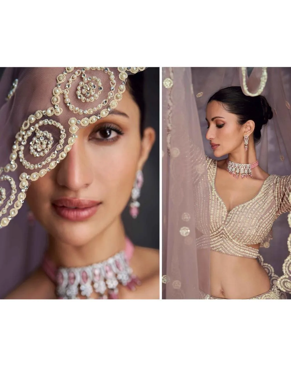 Details Pure Net Fully Embroidered with Hand Moti and Seroski Hand Diamond (Front and Back Full Handwork Embroidered with Cancan)