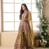 Details Pure Viscos Natural Crep Silk (Letest Trendy Viscos Crep Printed Top And Plazzo With Hand Hand Aari Work Embellished Gota Patti Aari Work All Over Detailing With Gota Tassales Dupatta)