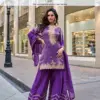 | Details | Pure Viscos Simar Jacquard Silk Full Heavy Look Viscos Simar Embroidered Top With Embroidered Plazzo Sharara And Dupatta |