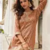 | Details | Premium Real Simar Silk / Viscos Jacquard Silk / Real Chinon Silk (Heavy festive look top with front and back embroidered sharara with digital embroidered dupatta) |
