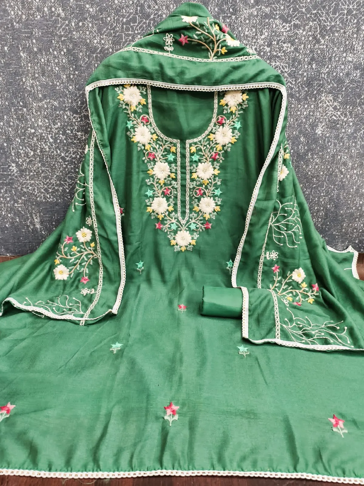 - Dupatta: Vichitra Silk Work