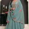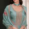 Details Thread Emb Moonga Silk Top, Santoon Bottom, Multy Thread Emb Silk Georgette Dupatta ( Semi Stitched Product )