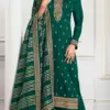 Details Embroidered Silk Georgette Top, Santoon Bottom, Self Weaved Organza Jacquard Dupatta ( Semi Stitched Product )