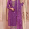 Details Embroidered Silk Georgette Top, Santoon Bottom, Embroidered Chinnon Dupatta ( Semi Stitched Product )