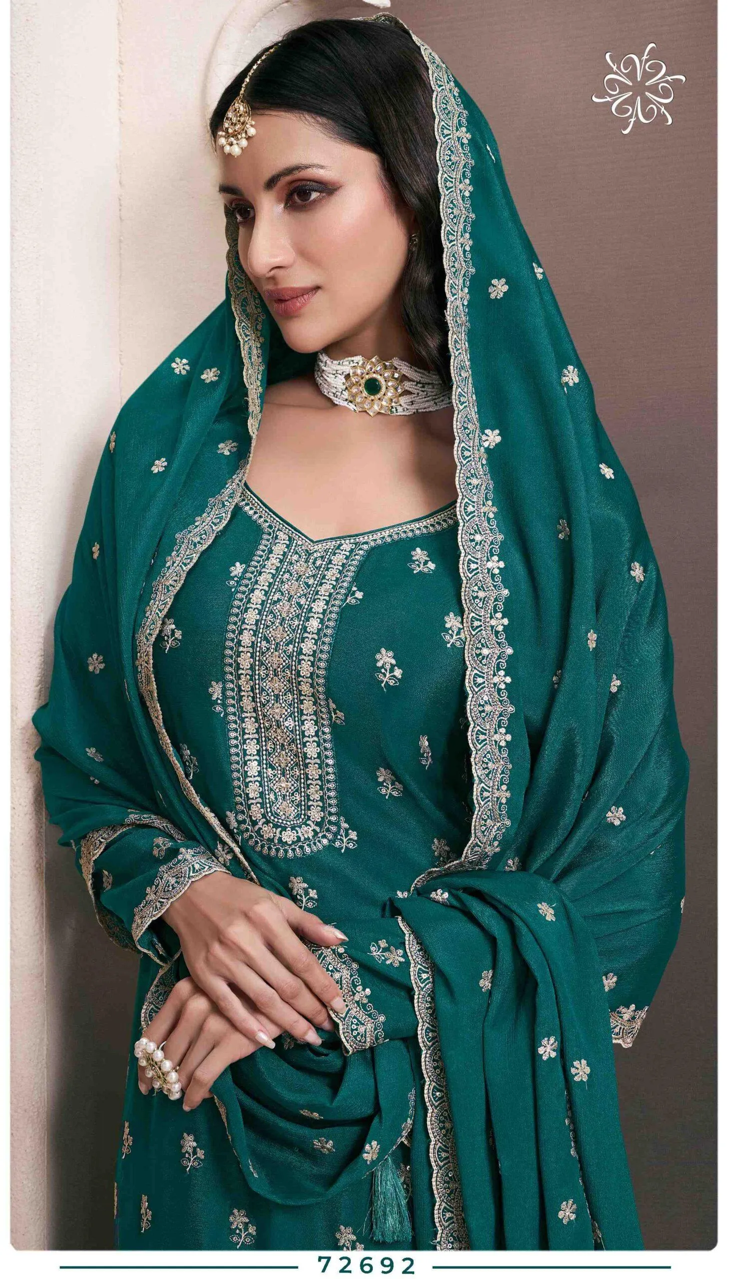 | Details | Designer Thread Embroidered Chinnon Top (Unstitched), Designer Thread Embroidered Sharara Bottom (Stitched), Designer Thread Embroidered Chinnon Dupatta |
