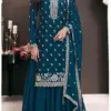 Details Designer Thread Embroidered Chinnon Top (Unstitched), Designer Thread Embroidered Sharara Bottom (Stitched), Designer Thread Embroidered Chinnon Dupatta