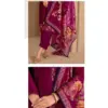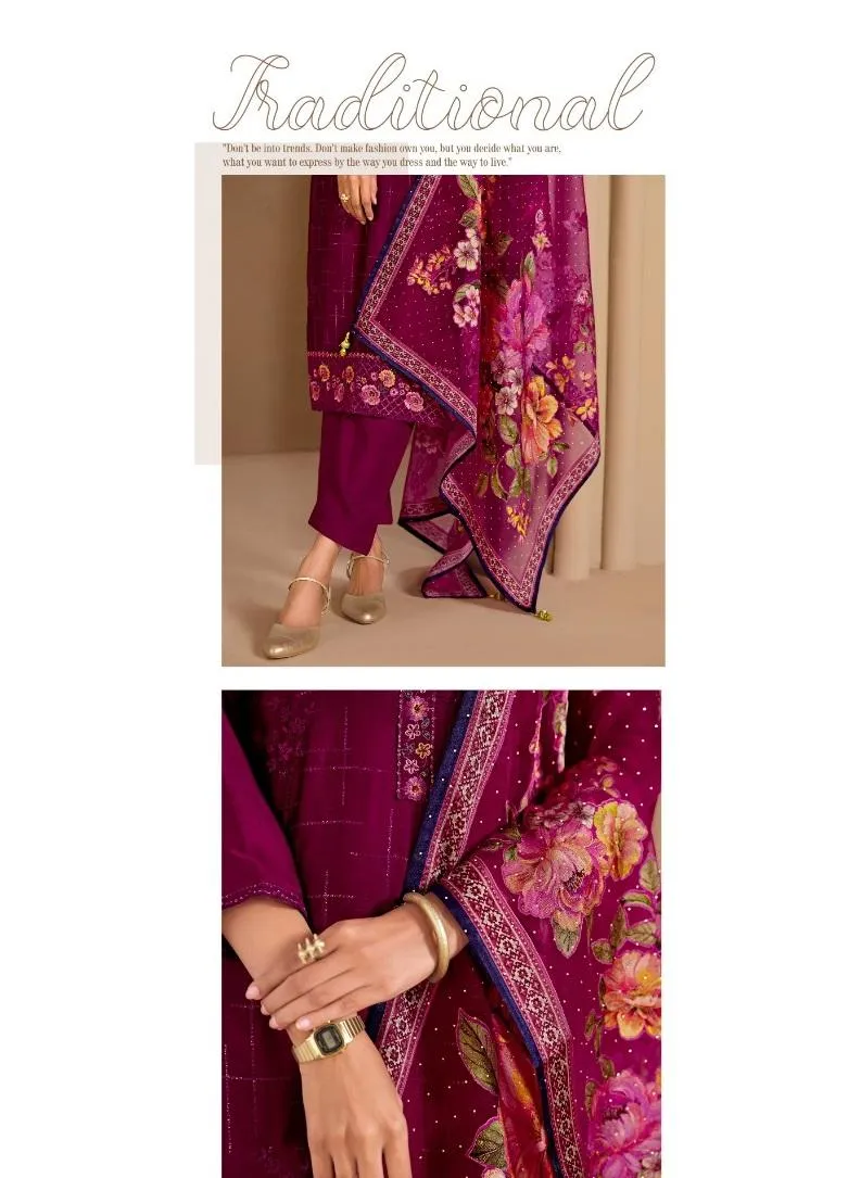 | Details | Chinnon Chiffon Top with Embroidery Work, Soft Santoon Bottom & Inner, Organza Brasso Print Dupatta with All Over Swarovski Work ( Semi Stitch Product ) |